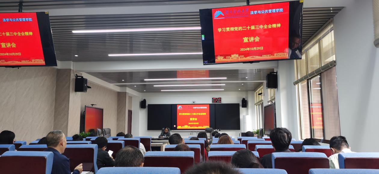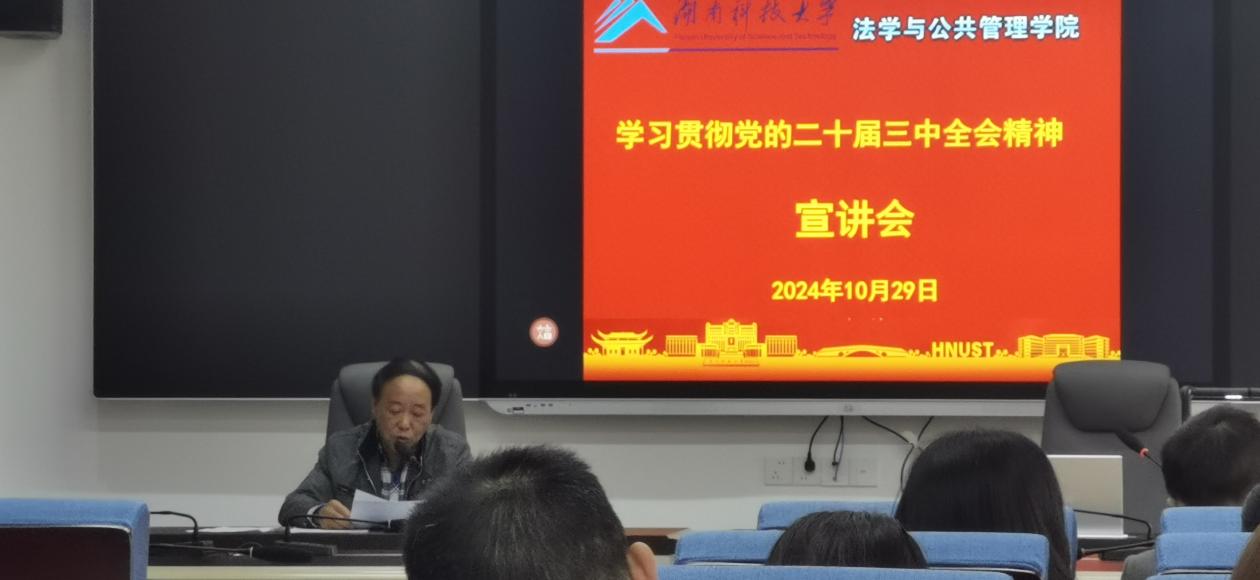 在立言楼A303会议室隆重召开学习贯彻党的二十届三中全会精神宣讲会。会议由院党委书记郑海祥同志主持并宣讲,学院全体教职工及学生代表参加了此次会议。