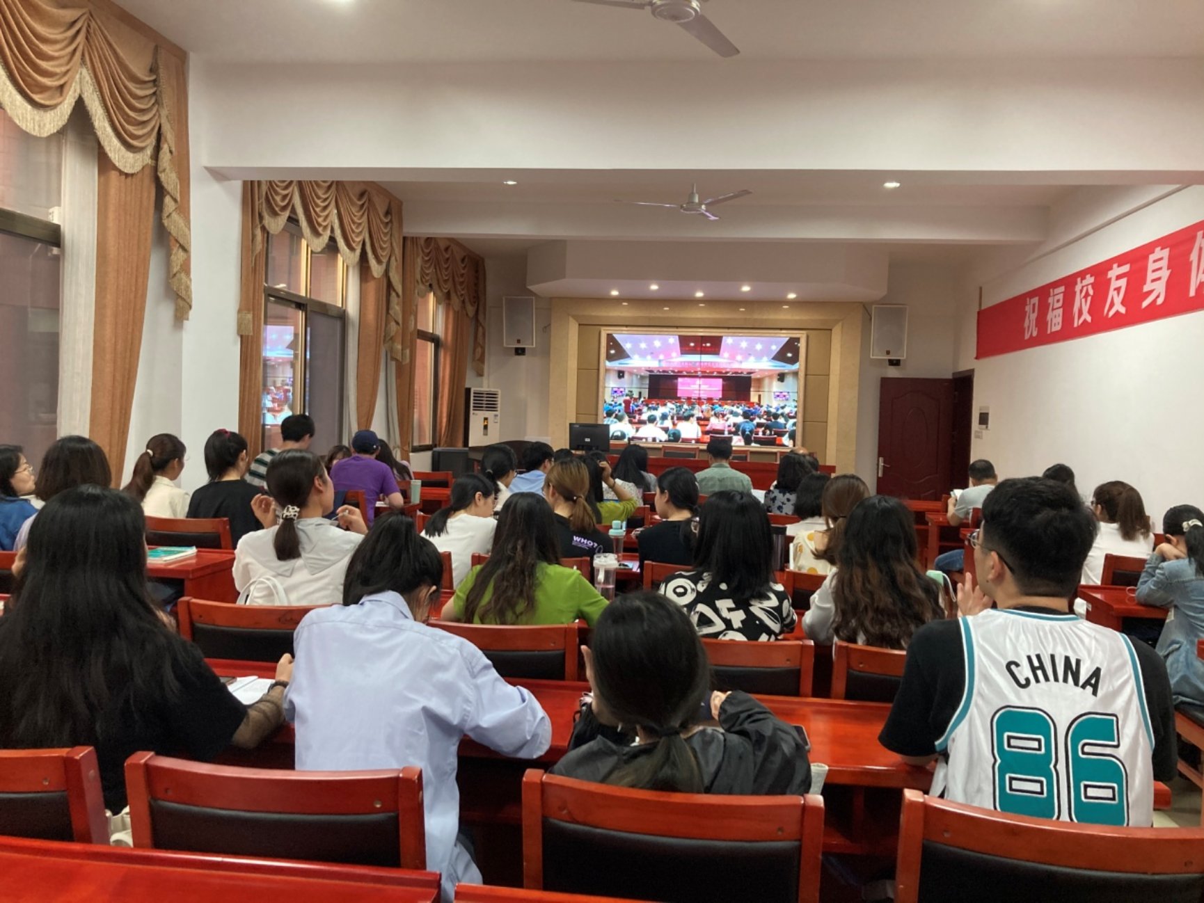 组织全体师生在立言楼A425会议室、立言楼A207、A208、A211教室观看了报告会直播。芭乐视频