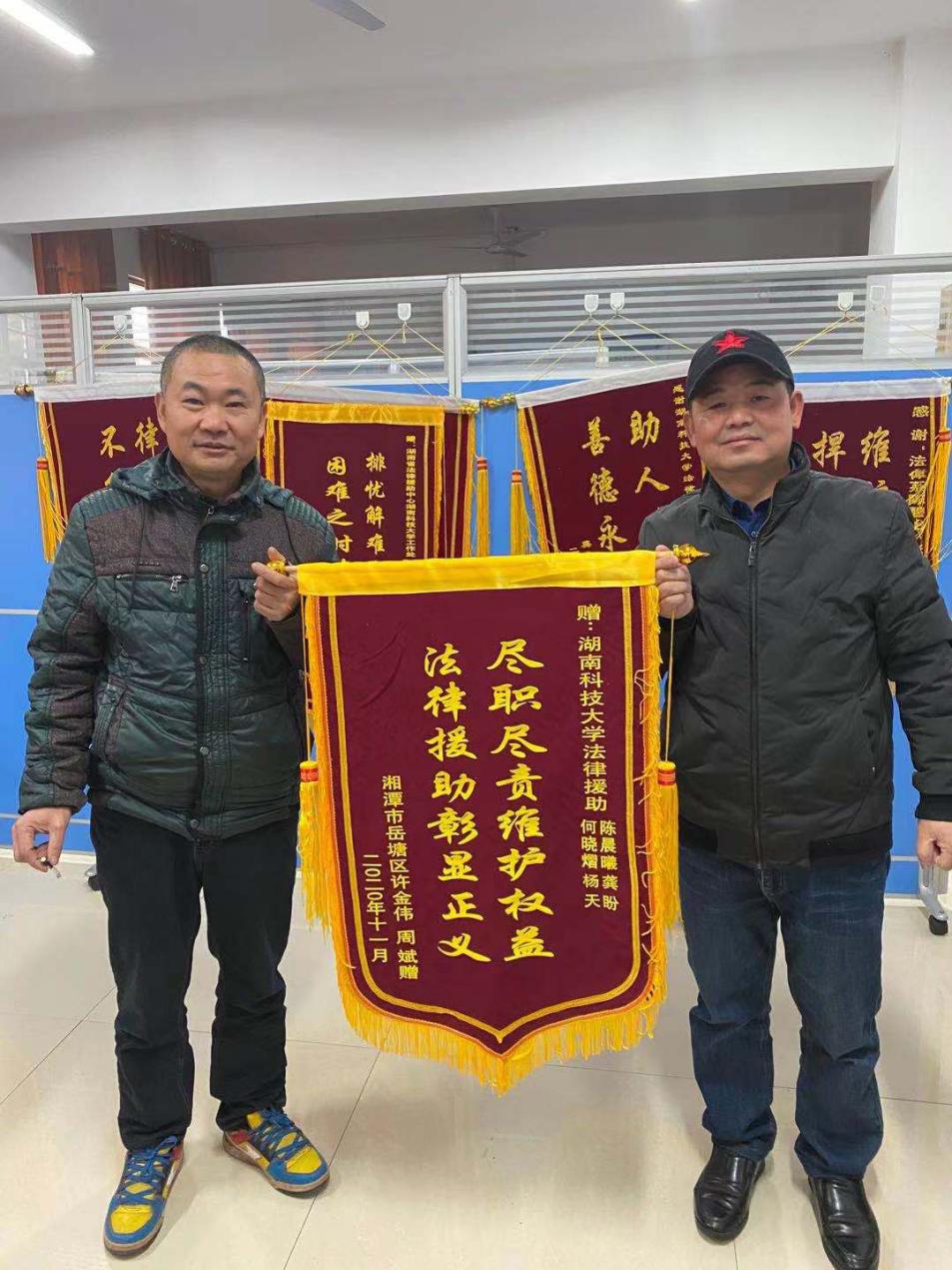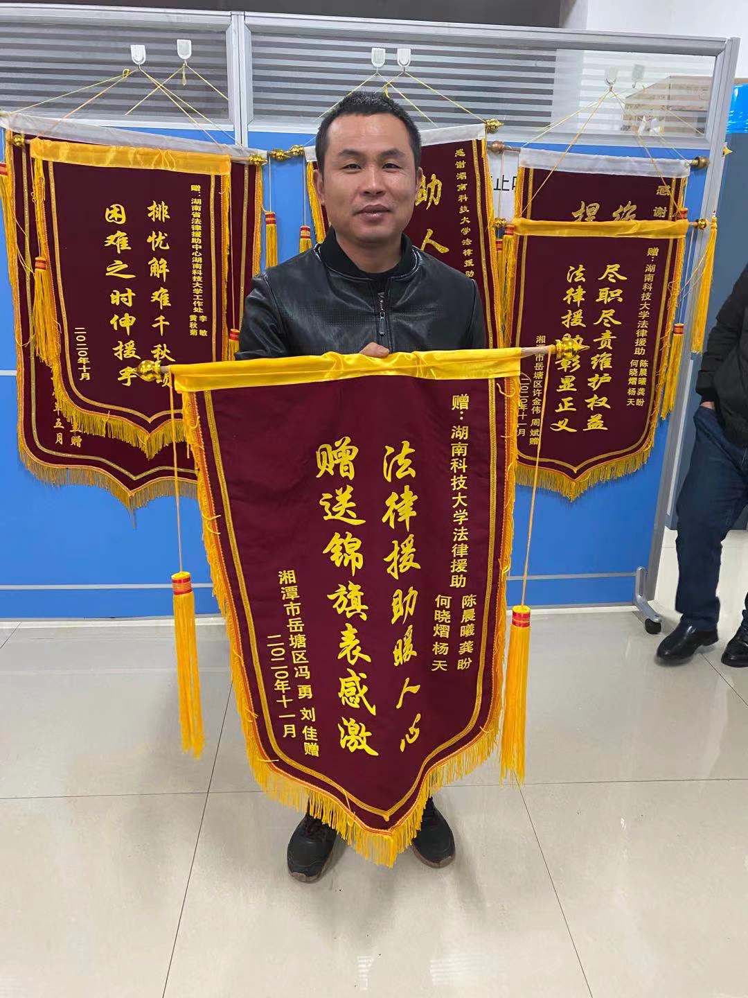 “真心感谢你们,这段时间辛苦你们了!”这是11月30日,周斌等四位受援人将两面分别写有“尽职尽责维护权益,法律援助彰显正义”“法律援助暖人心,赠送锦旗表感谢”的锦旗送到芭乐视频