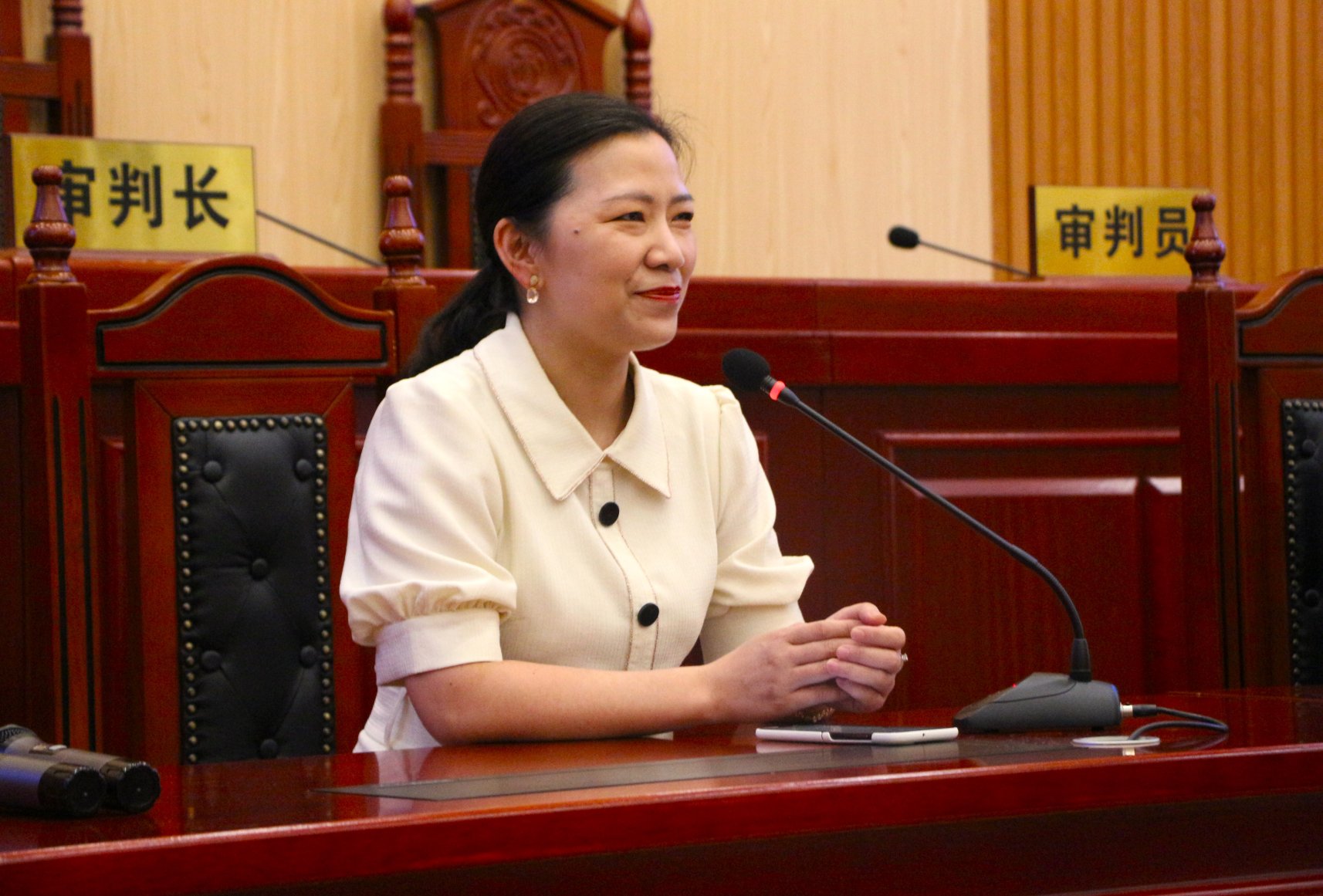 朱红梅老师、左洪剑老师、周玉利老师、雷勇老师对民事模拟法庭活动进行点评(图为朱红梅老师和周玉利老师)