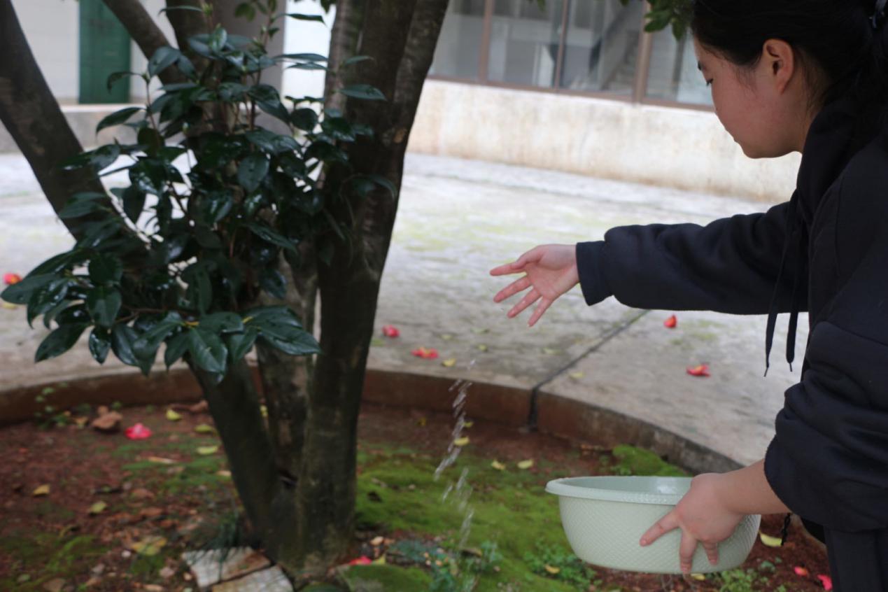 “务必注意安全!请各班分头行动!”话音刚落,学生们便井然有序地投入到劳动当中。浇灌树木、清除杂草,清扫垃圾……树上是樱花随风起舞,树下是学生辛勤劳作,平淡而意义非凡的劳动教育实践活动成为樱花园里一道亮丽的风景。
