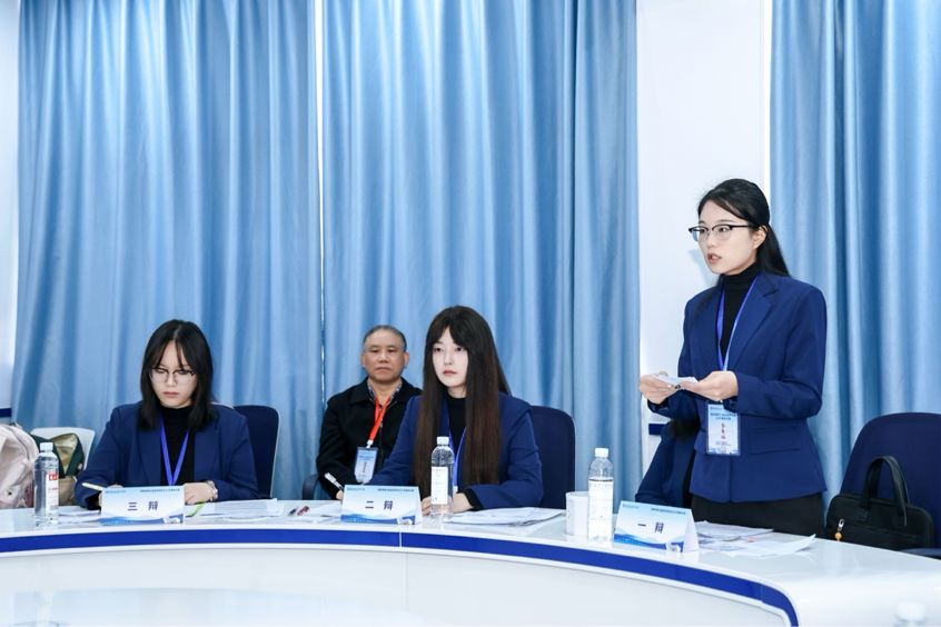 代表队沉着冷静,积极面对强劲的对手,沉稳应对赛场突发情况。他们围绕案例焦点,在立论、自由辩论和总结陈词等环节保持出色的比赛状态和水平,展现出优秀的法学专业素养和良好的团队协作精神。