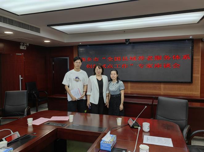 养老服务团队宋智敏教授、徐金燕副教授与江河博士应邀出席了湘乡市全国县域养老服务体系创新试点工作座谈会。