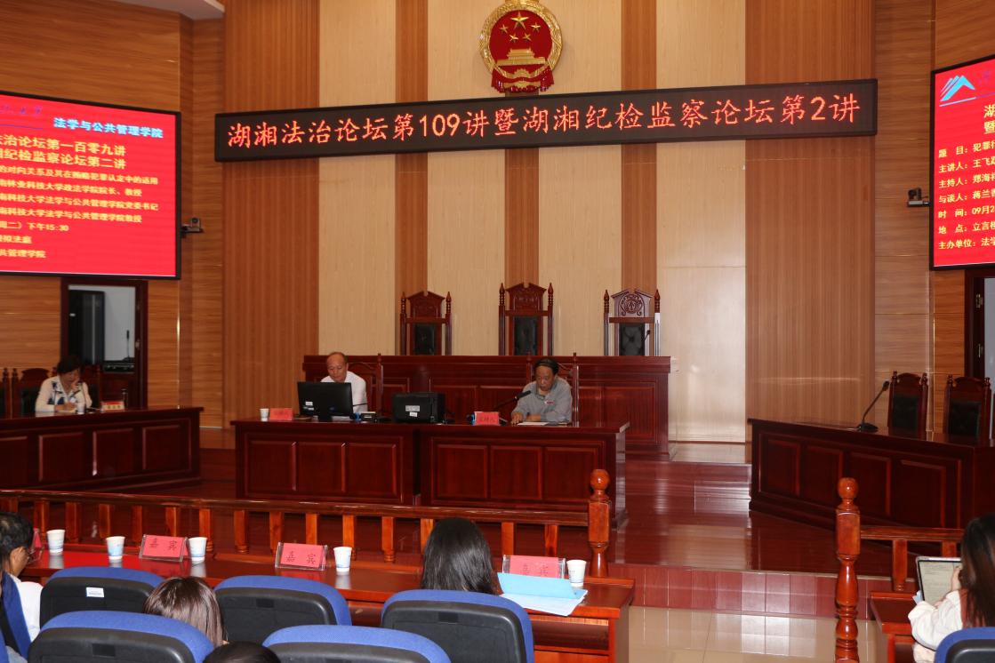 9月26日下午,中南林业科技大学政法学院院长、湖南省刑法学会副会长、北京大学刑法学博士、美国华盛顿大学访问学者王飞跃教授应邀在立言楼模拟法庭开展《犯罪行为中的对向关系及其在贿赂犯罪认定中的适用》主题讲座。出席本次讲座的有芭乐视频