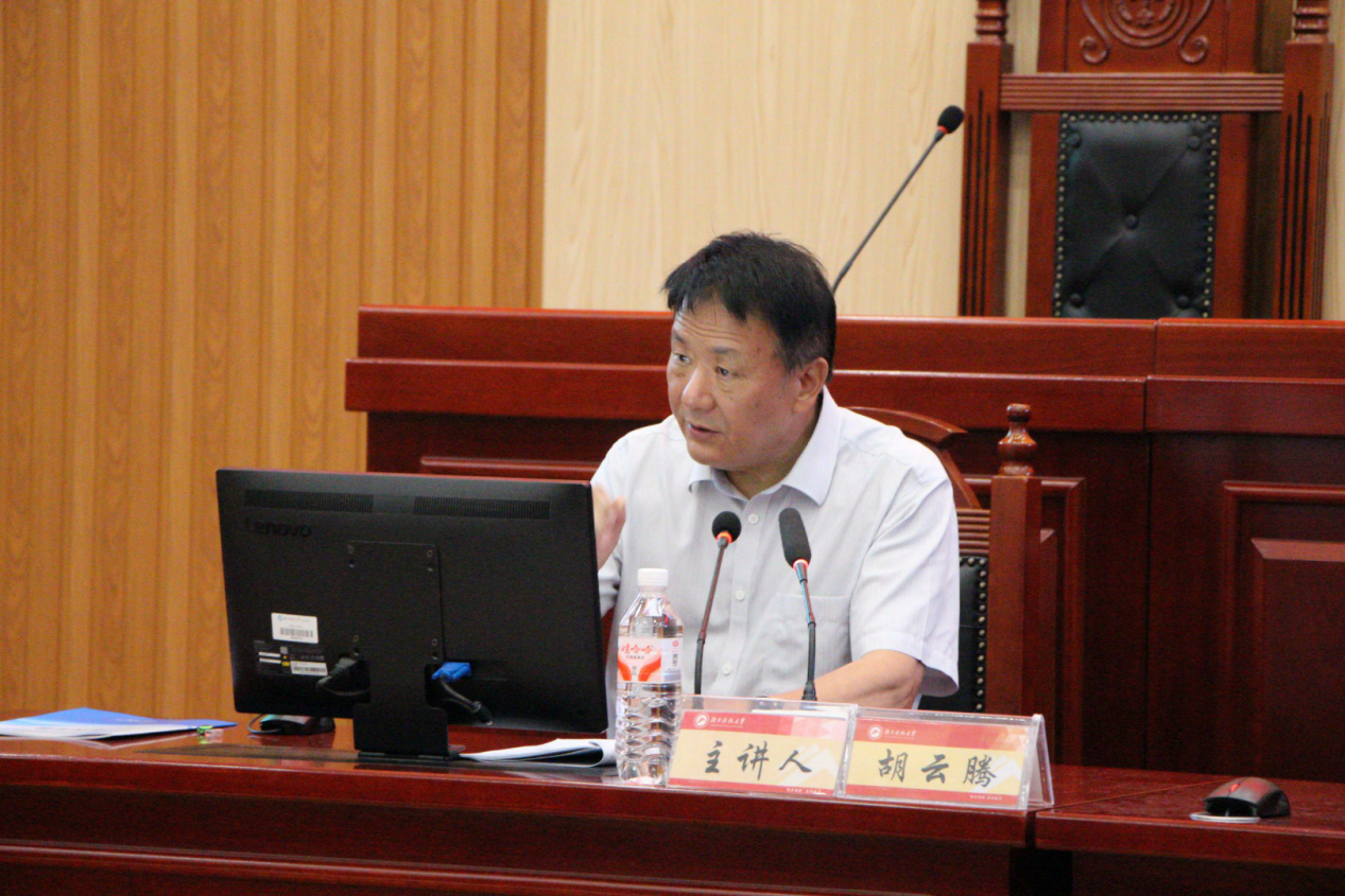 为深入学习宣传贯彻党的二十届三中全会精神和习近平法治思想,完善以实践为导向的法学教育和法学理论研究,2025年6月21日,最高人民法院咨询委员会副主席、中国法学会案例法学研究会会长胡云腾教授应邀在湘江高端论坛暨湖湘法治论坛第153讲作 “推进案例法治的思考” 的学术讲座,讲座由芭乐视频