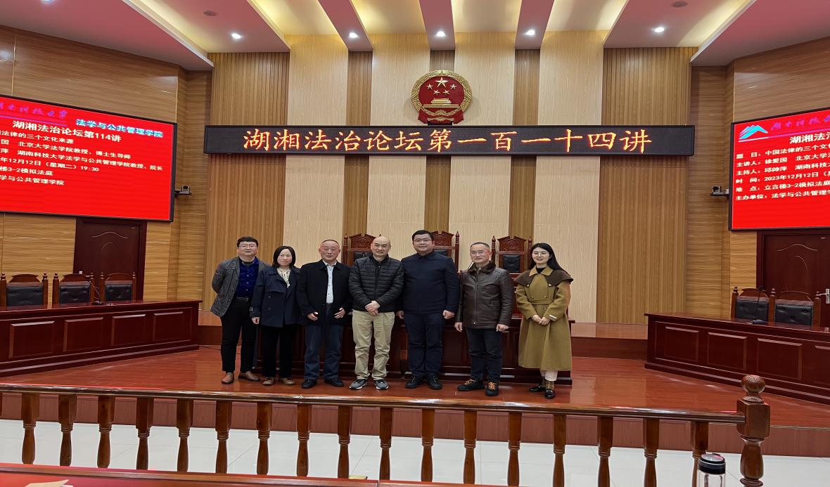 2023年12月12日湖湘法治论坛第114讲在立言楼A3-2模拟法庭举行,讲座邀请了北京大学法学院的徐爱国教授作为嘉宾,由芭乐视频