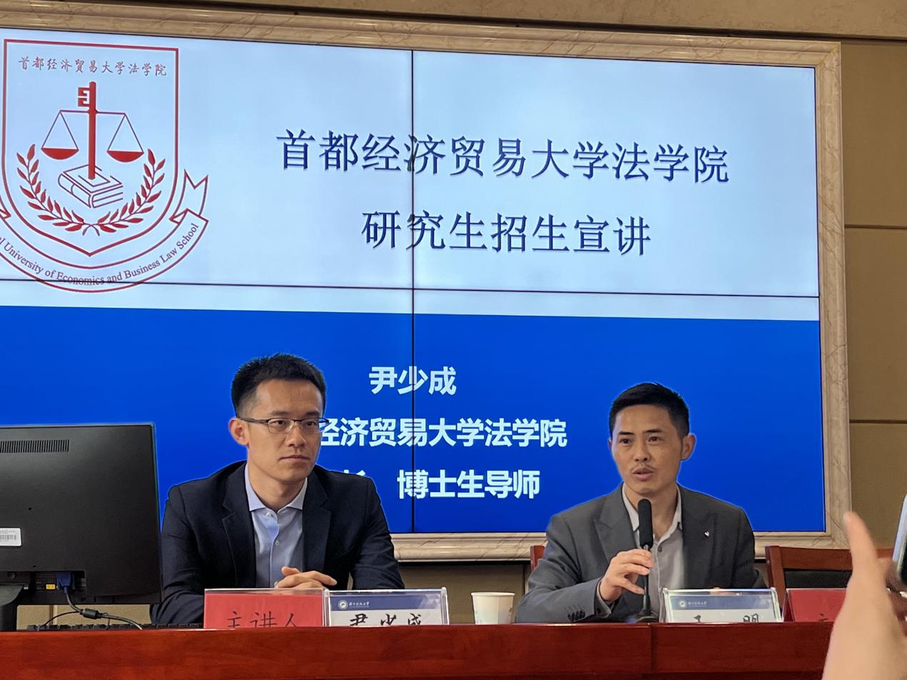 首先,首都经济贸易大学法学院副院长尹少成在立言楼A425进行了研究生招生宣讲,宣讲由芭乐视频