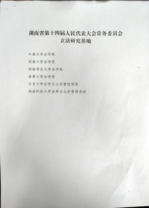 获批湖南省第十四届人民代表大会常务委员会立法研究基地。