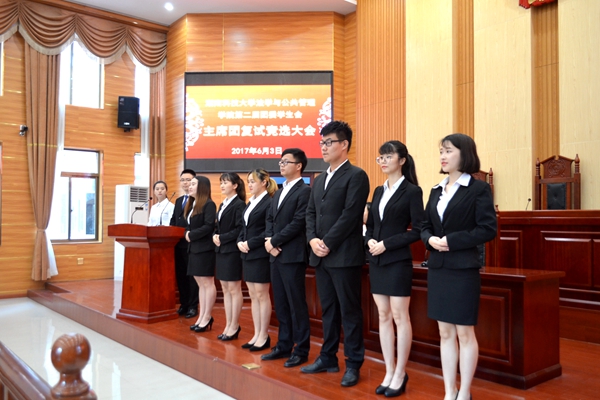 党委副书记叶军,辅导员王球云、伍安、刘春生、张惠和王新以及第一届主席团成员,各部门部长,14-16级各班选举代表。 大会第一项,由第一届学生会主席赵文超作上年度学院工作报告。首先,他从工作、经验、成就三个方面对第一届的主席团的工作做了简要的回顾与总结。接着他与大家分享了在过去一年中第一届主席团成员是如何在新学院合并的情况下,披荆斩棘,勇于创新,为学院付出,也使自己成长的历程。最后,他对下一届团委学生会干部们寄予厚望。“坚持自己的理想,记住自己的承诺,创造法管辉煌!” 经过层层筛选,脱颖而出的七位主席团候选人,15法三谭巧俐、15法一杜婧、15公一刘湘相、15公一张艺辉、15公二李禹宏、15公二马晓璇、15法一赵雪燕依次上台做竞选演讲。他们分别向大家展示了个人简历、竞选优势、工作设想等。候选人们个个西装革履,意气风发,朝气蓬勃。 大会的高潮,即投票和计票环节。每个同学拿到投票表都进行了斟酌思考,为自己心目中的最佳人选投出神圣的一票。与此同时,叶军书记也作了最后的总结发言,“从竞选主席团同学们的积极表现中可看出,学生会是一个汇聚青春正能量的地方。我希望新主席团成员能够‘在其位,谋其政,担其责’,扎扎实实地开展工作,用行动来证明自己的能力,用行动来为芭乐视频