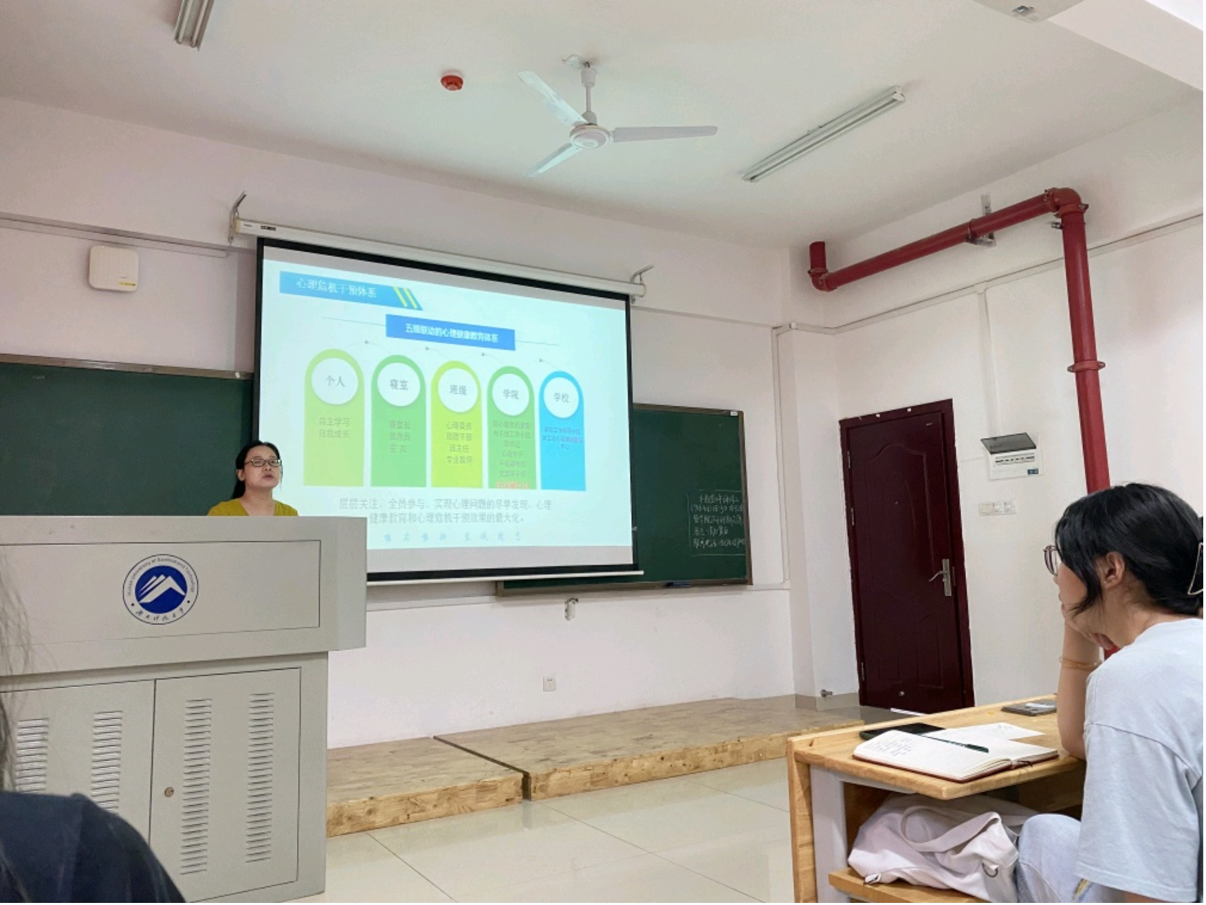 朱荣老师首先介绍了养成辅导员在心理健康教育上的重要作用和独特优势,其次交代了养成辅导员的职责和任务,要求养成辅导员要协助辅导员老师开展心理健康教育工作,并及时了解和跟进本班级新生的心理变化,做到早发现、早反馈、早解决。