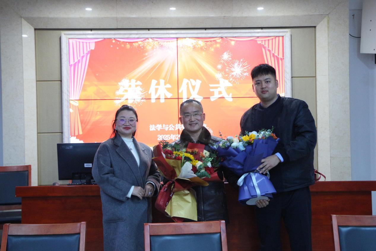 全体教师齐聚一堂,两位校友专程返母校出席,仪式由院党委书记郑海祥主持。