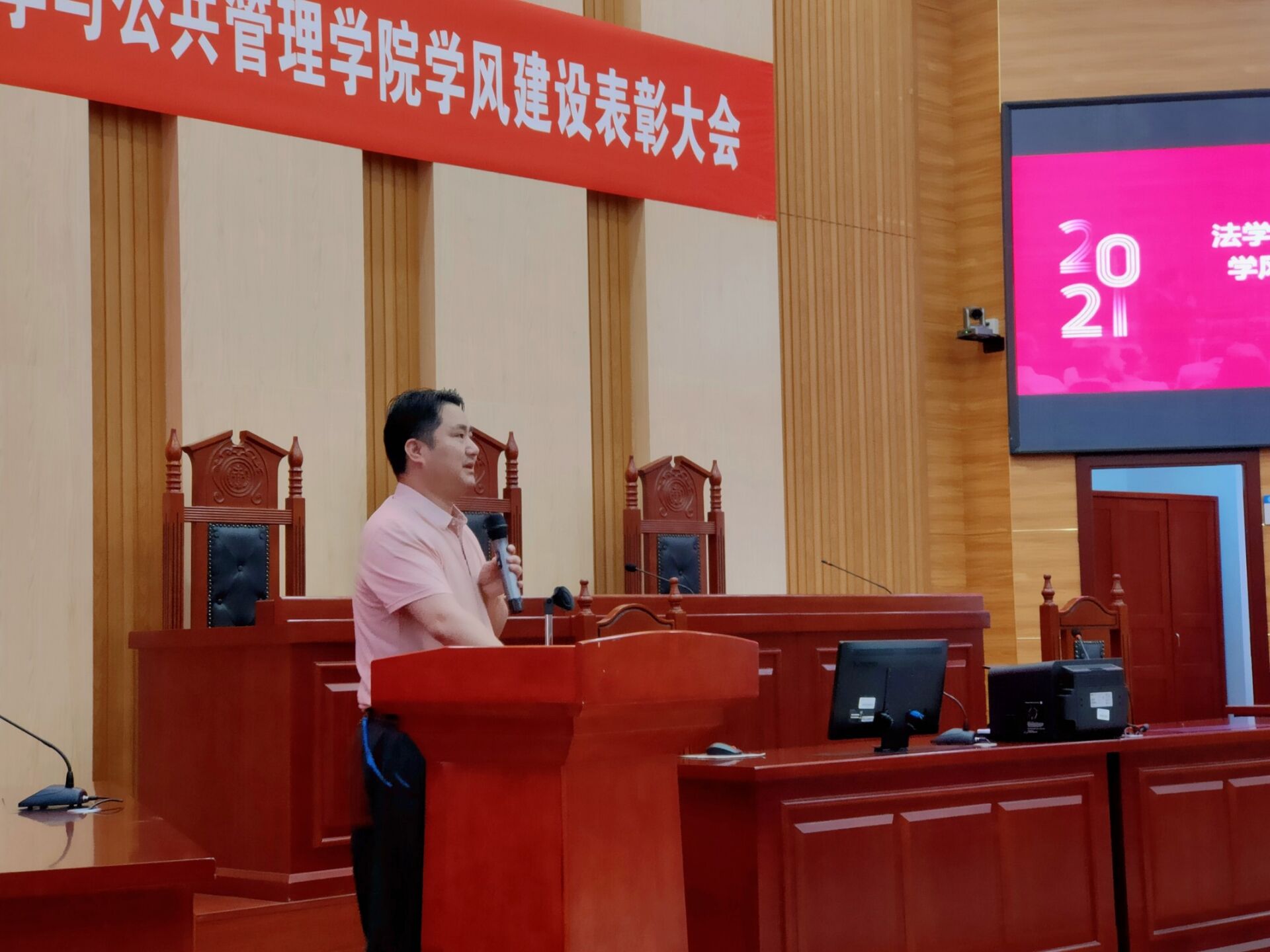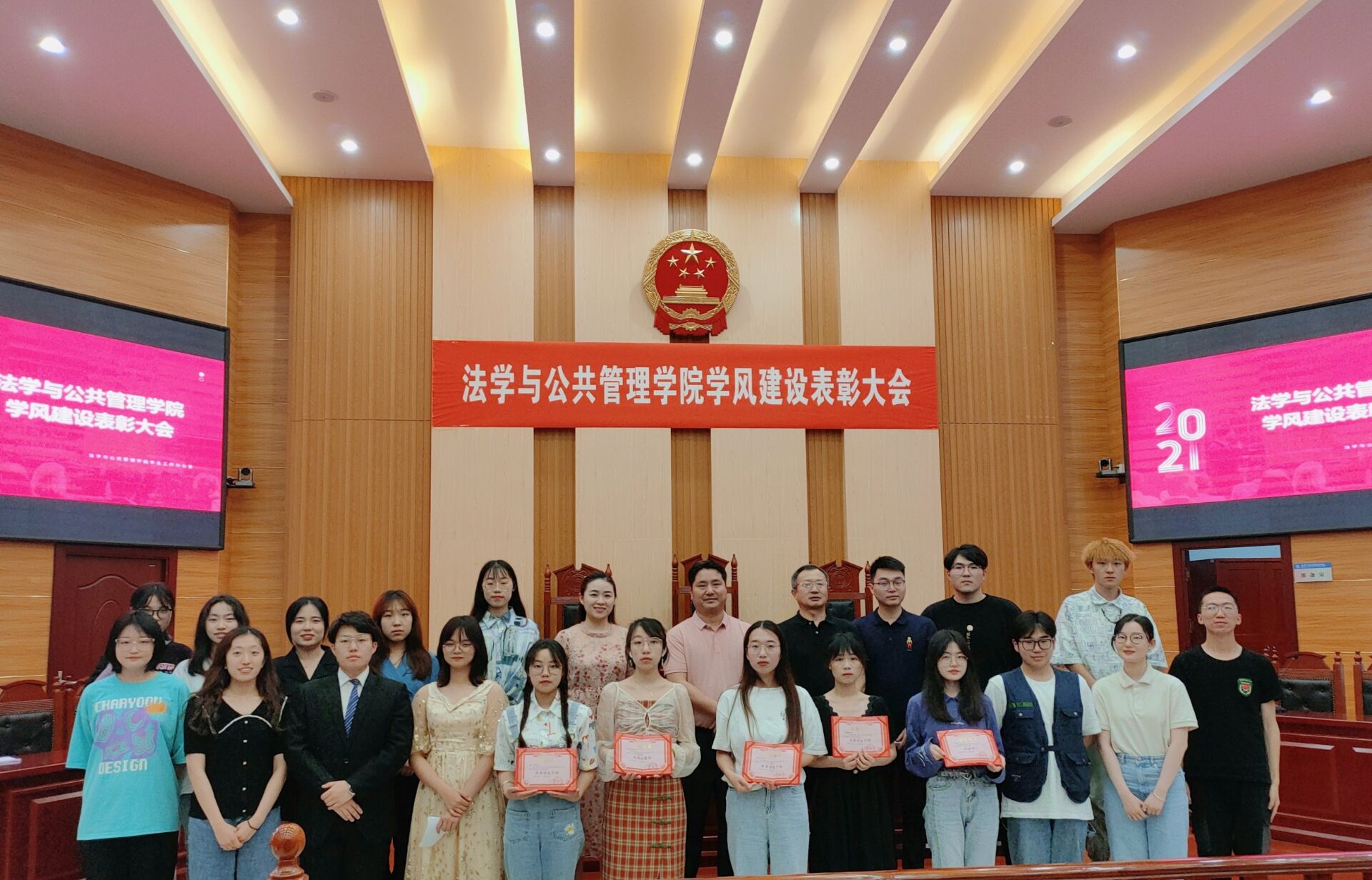 学风建设表彰大会在立言楼模拟法庭隆重举行。出席本次活动的有院党委书记黄伟、院党委副书记蒋会平,学工办全体辅导员以及学院19级和20级学生代表。