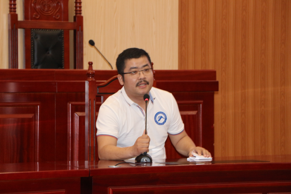首先,王明副院长上台发言,他强调了毕业论文的相关注意事项,并为论文的修改提出了建议:切忌主观化语言;注意时间节点;同学之间可以相互修改,走出自己的思维定势。