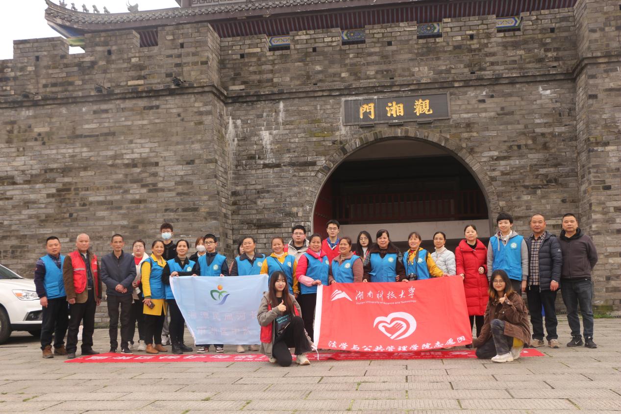 青年志愿者分会一行人来到雨湖公园,于湘江沿岸开展环境保护志愿工作。