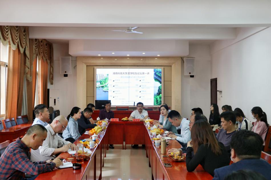 法学校友论坛会第一讲在立言楼A425顺利举行。此次论坛会以“单位合规建设与职工权益保护”为主题。来自长沙、株洲、湘潭的周本强、韩祥、胡俊杰、李萍、刘畔、郭溶溶、罗贵成、刘波等优秀法学校友受邀前来交流分享。学院党委书记邱帅萍,副书记叶军,老师徐德刚、胡正昌、喻军、刘鄂、章小兵等出席论,部分法学硕士研究生和法律援助中心本科学生到场参与、学习。论坛会由邱帅萍书记主持。