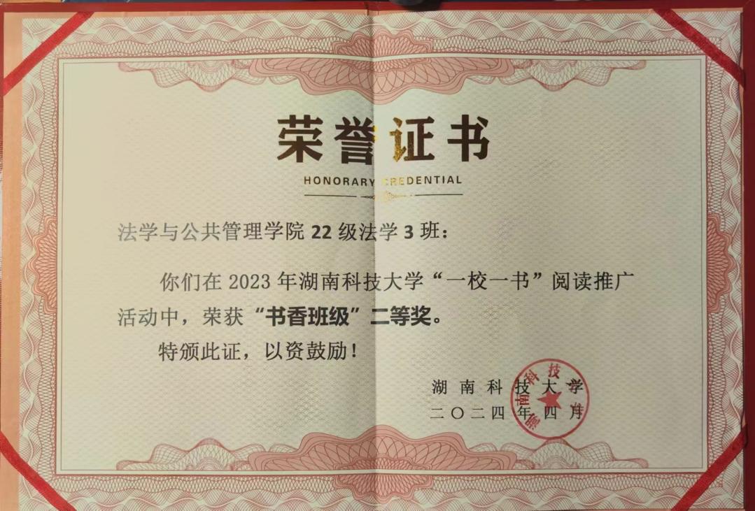 22级法学三班在本次比赛中荣获“书香班级”二等奖的优异成绩,不仅全方面培养了同学们的阅读素养,更为芭乐视频
