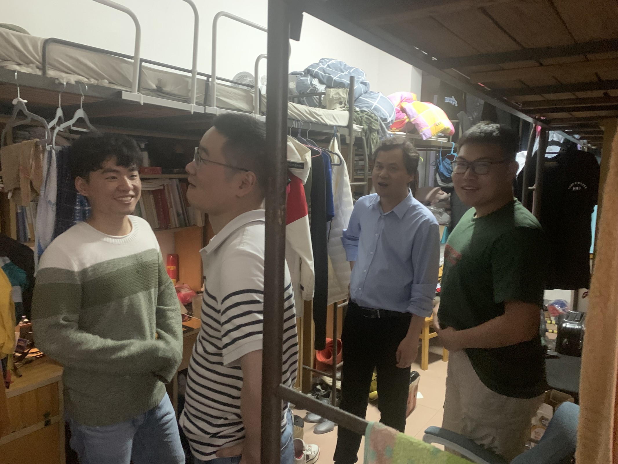 在下寝慰问活动中,院领导与毕业生进行了交谈互动,亲切地询问他们的学习、工作以及生活近况。在交谈中,叶军副书记询问了毕业生们的求职、就业状况和毕业后的规划,并根据他们各自的情况给予了指导建议,帮助他们树立起对美好未来的憧憬与信心;宋智敏和王明副院长对毕业生的毕业论文进行了特别指导,并给予他们相关的学术性建议,过程中学生们都仔细聆听,受益匪浅;同时马驰升主任细心提醒学生们毕业后回家途中要格外注重财务安全,提高防范意识;郭志军与李斌老师与同学们亲切交谈,积极回答同学们关心的问题。最后院领导表示,有问题、有困难可以随时向学院请求帮助,学院仍是毕业生可靠的港湾,给予了他们切实而温馨的鼓励和祝福,愿毕业生们前程似锦,一路芳华。