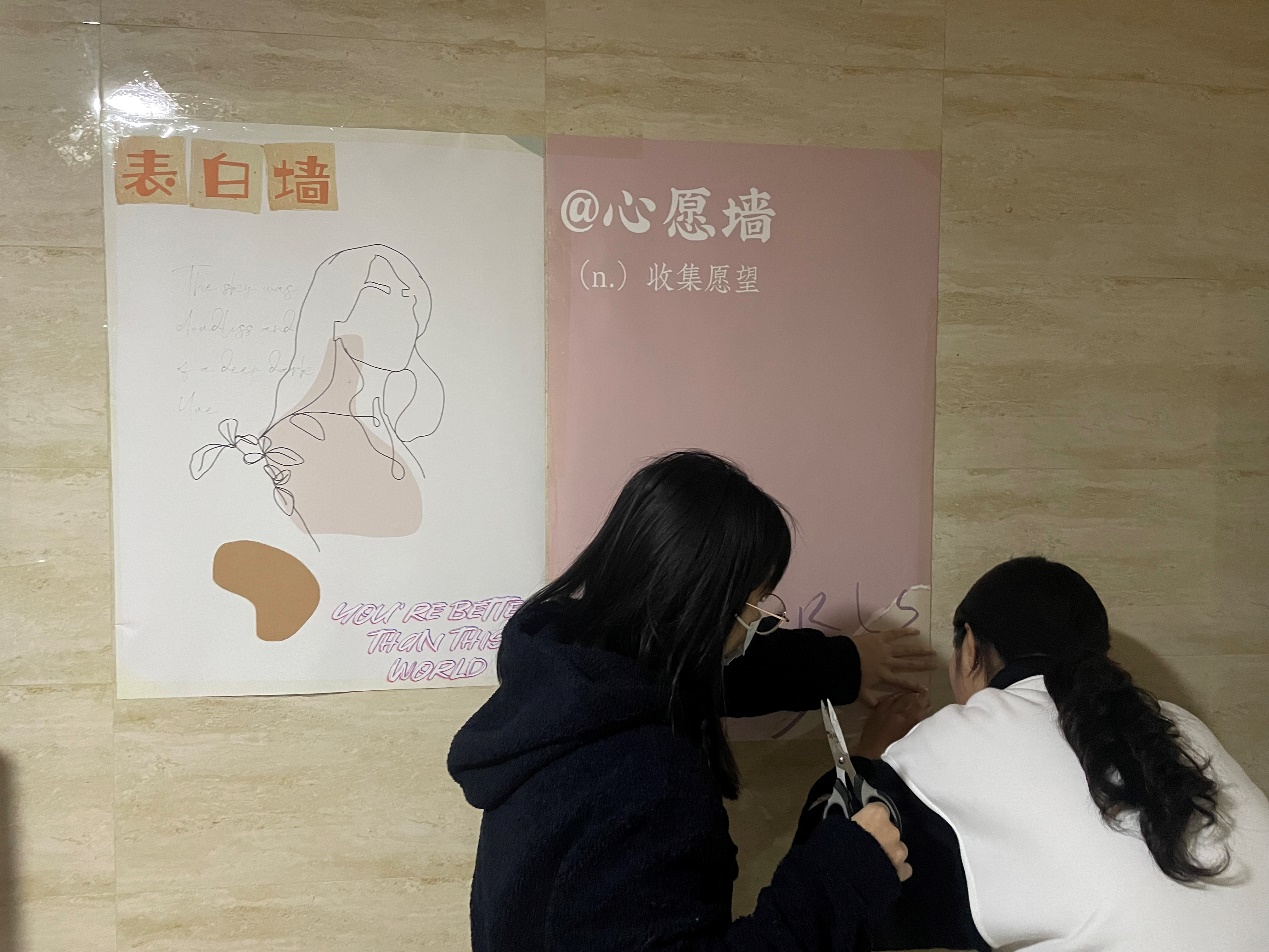 本次内容由心愿墙、女神墙、表白墙和送温暖四个部分组成。其中,心愿墙和表白墙都可线上、线下两个进行,同学们既可在学院文体部官方评论区说出自己心中还未实现的小心愿,也可到立言楼制定区域写下心愿;同时还能向自己心目中的女神表白。学院会给予通过“送温暖”活动给予反馈:一是在心愿墙和女神墙中随机抽取幸运儿,工作人员会为其送上一份礼物;二是制作并发出各形各式的二维码,同学们通过扫码会在手机里弹出一句独特、温暖的祝福语来激励他们微笑面对挫折与坎坷。