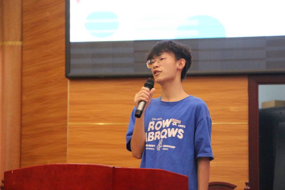 19级法学四班刘豪代表在校生发言,他与同学们分享了自己的学习经验,同时提出了许多行之有效的学习建议,鼓励2021级同学们不负韶光,不忘初心,做努力奔跑的追梦人,做维护社会公平正义的法治之光。21级法学一班的赵文翔作为新生代表上台发言。他表示,罗翔老师生动有趣的教学燃起了他内心对法学专业的热爱,而法律在他心中也从捍卫他人和自身权益的武器变成了内心执着追求的梦想。他认为,学习法律的意义不仅在于唤醒人们心中的正义感,更在于从中所汲取的逻辑、谨慎、细致和冷静的法学思维。