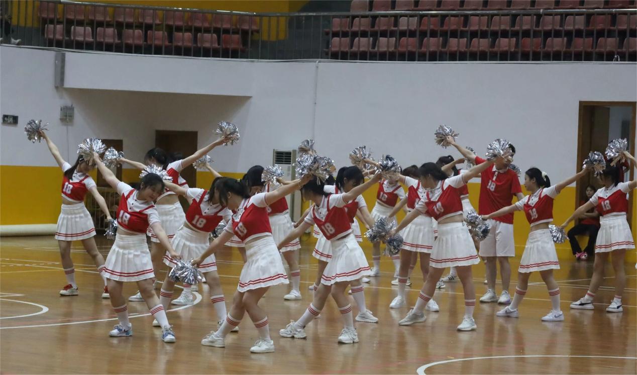 比赛开始,同学们随着场馆内动感有趣的音乐尽情舞动,绰约多姿。五彩缤纷的花球,多种多样的队形,热情洋溢的笑容,无一不展现法管学子的青春靓丽。他们怀揣着激情与梦想,用动感的形式,精湛的舞技,诠释最富活力的青春。现场观众热情高涨,欢呼声此起彼伏,整场比赛精彩纷呈,高潮迭起。