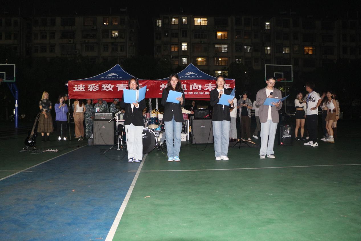 党委书记郑海祥老师、党委副书记范军豪出席本次活动,辅导员郭志军老师、彭钰会老师以及其他任课老师等共同参加此次活动。2023级新生肖广翔、曹琼宇、谌婷、姜金育担任本次活动的主持人,他们出色的控场能力使本次军训慰问演出活动获得圆满成功。