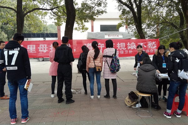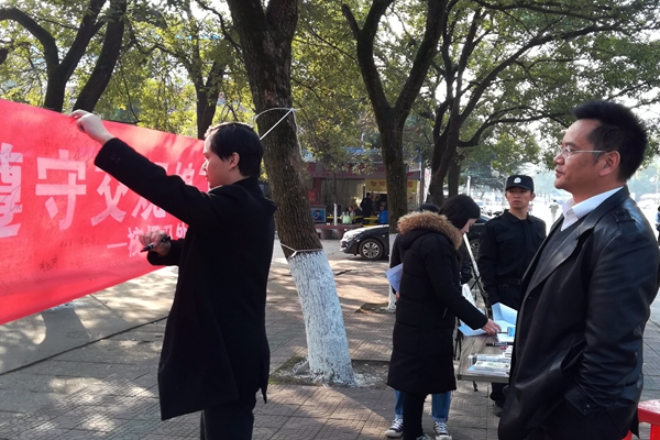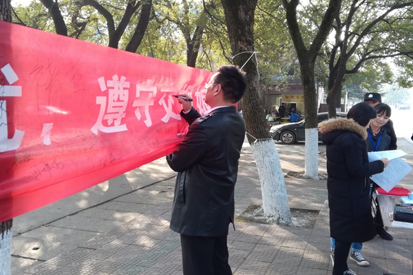 党委副书记叶军莅临现场。 活动在我校电信路口、七区、八区、南校美食广场分别进行,醒目的横幅和宣传展板引得来往人群围观学习。同时,工作人员在服务点周边分发宣传单,邀请广大师生参与问卷调查并在横幅上签名。法律协会的工作人员利用耳麦轮流宣讲,他们希望通过对校内道路交通安全事故的介绍,引起大家对道路交通安全的重视。活动最后的抽奖竞答环节,大家纷纷积极参与,现场气氛十分热烈。 法律协会的工作人员肖智丹接受采访时说道:?据调查,学生交通法规的意识淡薄是校园道路交通事故频发一个重要的原因。我们希望通过此次活动,提高广大师生预防道路交通安全隐患的能力和遵守交通秩序的自觉性,共建安全校园。 (责任编辑:admin) |