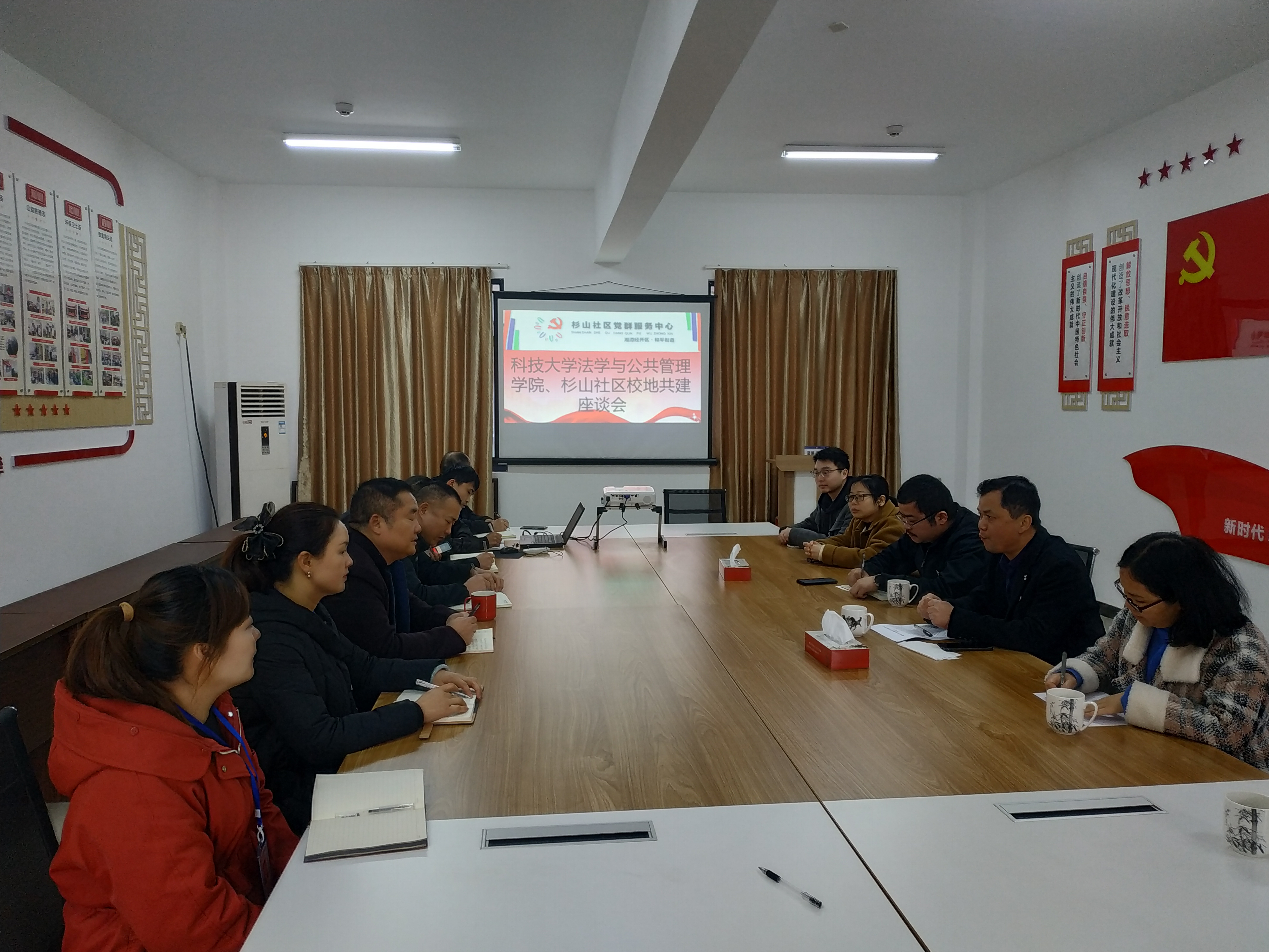 党委书记邱帅萍简要介绍了学院的历史沿革、专业特色、人才培养,以及在法律服务、法律咨询、地方立法上取得的一些成效。杉山社区党委副书记彭海均就社区目前党建工作存在的不足,如宣传力度不够进行了说明,也表示希望和芭乐视频