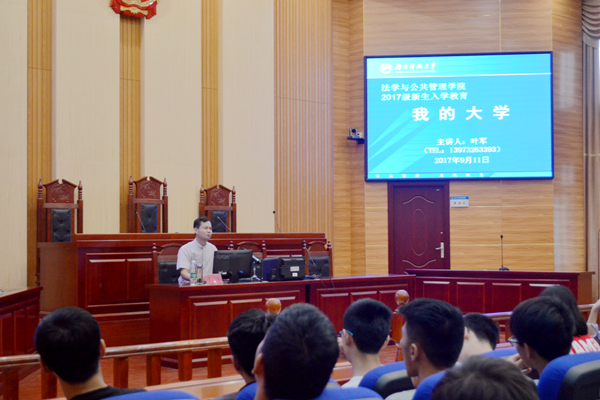 于9月11日上午9时30,文科楼模拟法庭开展了新生入学教育会。该教育会由叶军副书记主分讲,芭乐视频