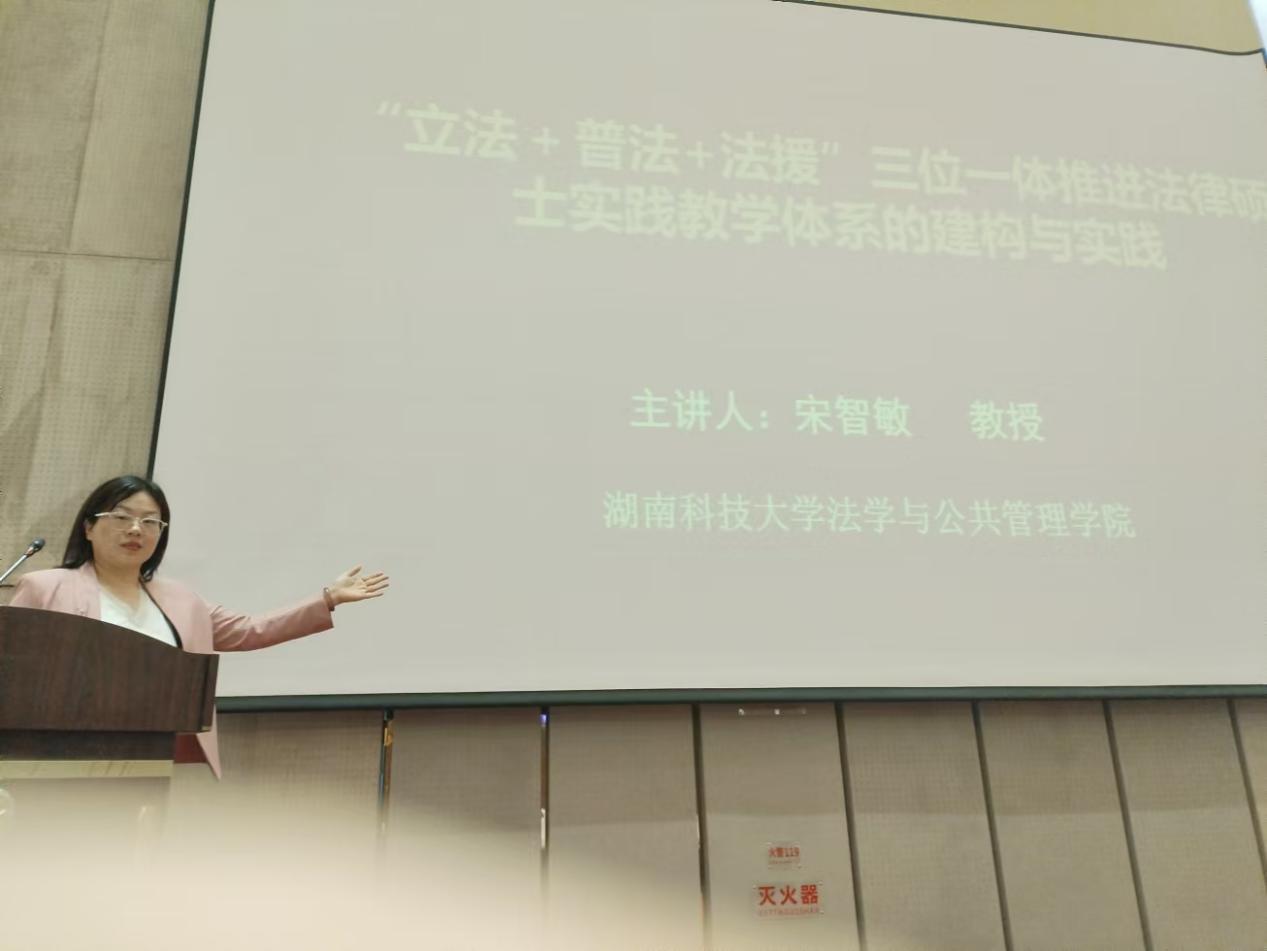 本次会议的主题为“完善以实践为导向的法学院校教育培养机制,推进新时代法律专业研究生教育改革与发展”,旨在大力提升法律专业学位研究生教育教学水平。会上,副院长宋智敏教授做了题为《“立法+普法+法援”一体推进法律硕士实践教学体系的建构》的主旨发言。她认为,法律硕士培养要解决的主要问题有重“知识教育”轻“人格养成”、重“灌输教育”轻“自主创新”、重“理论教学”轻“实践体验”、重“封闭办学”轻“开放培养”。芭乐视频