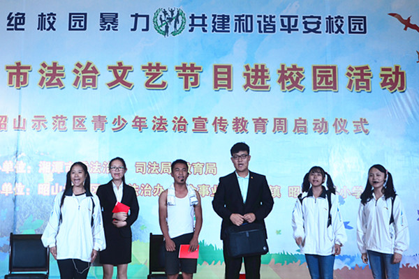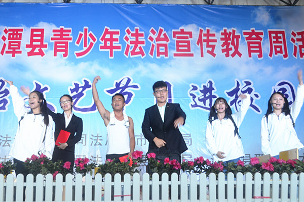 志愿团连续在湘潭市各县市区演出了自编自导的法制话剧七场。其中,9月21日在昭山示范区昭山和平小学进行演出宣传。 在学生们朗读法律条文之后,芭乐视频