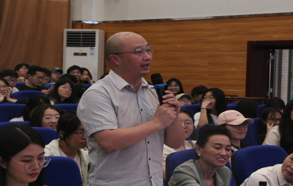 院长邱帅萍教授做总结发言。邱院长表示:“今天听了卢教授和张教授的发言,在坐的各位老师们、同学们也都是受益匪浅。让我们大家再次以最热烈的掌声感谢卢教授和张教授!”(文/刘湘容、张炎)