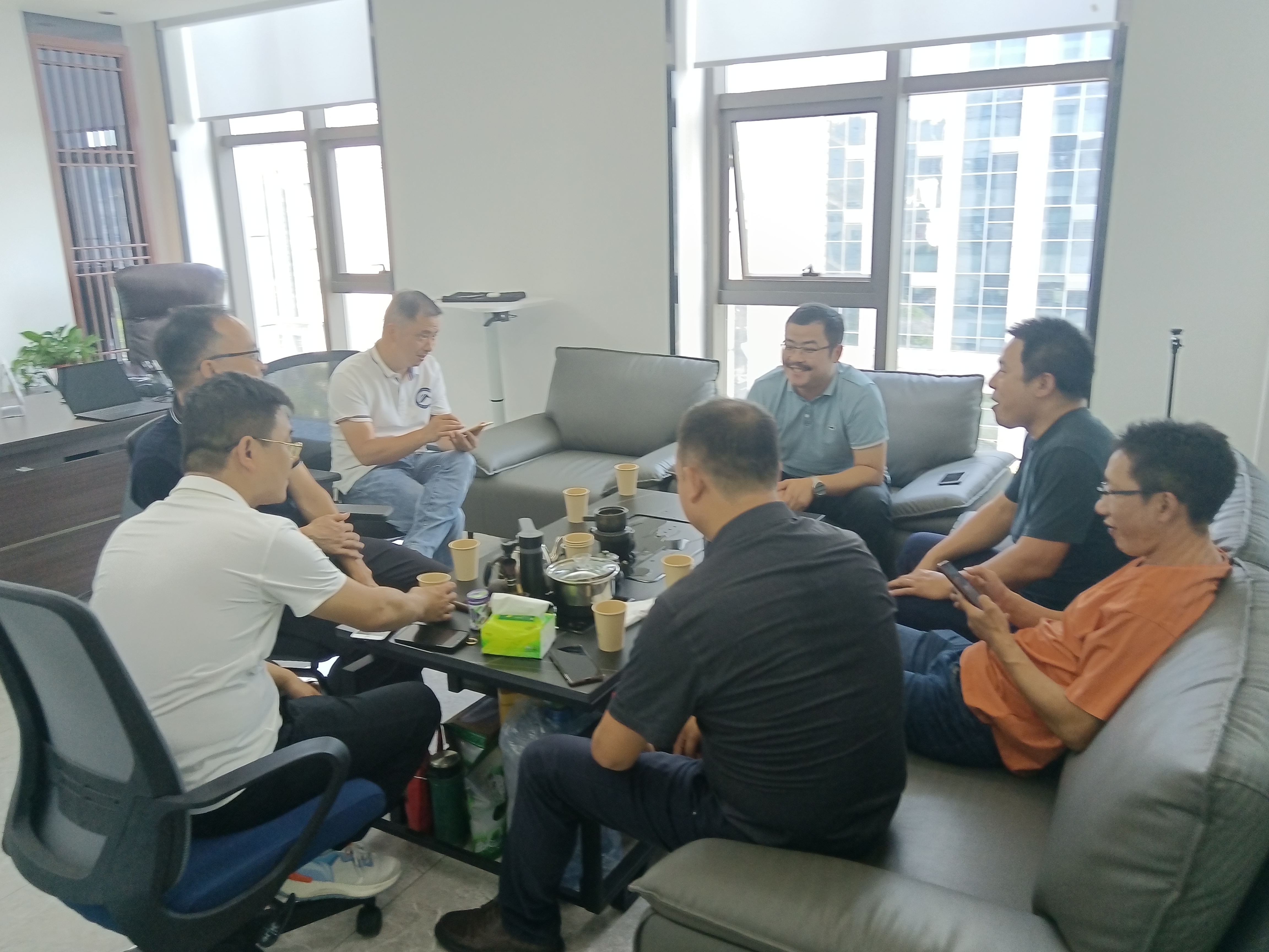 公管校友分会秘书长邓成铁代表公管校友对邱帅萍书记一行表示热烈欢迎,陪同邱帅萍书记等师友参观了其创办的汇成全球物流有限公司办公场地,并与师友就公司的发展规划、业务情况、人才需求、实习岗位、校企合作等开展交流。