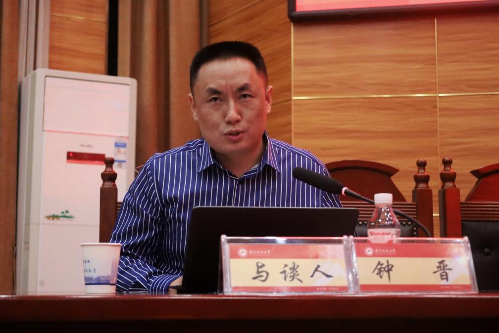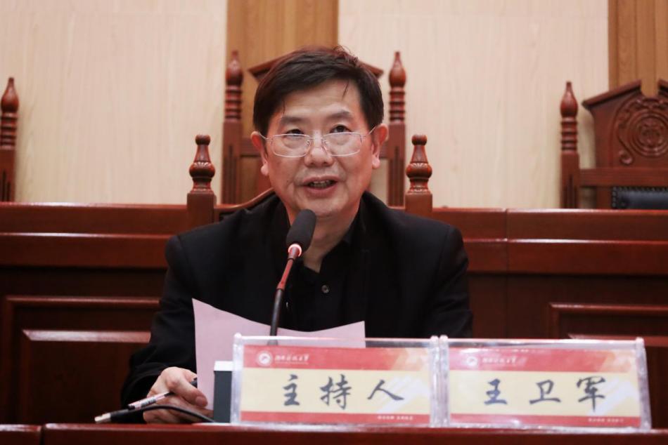 王卫军副校长主持,湘潭市司法局局长钟晋与谈。中级人民法院副院长彭小英率湘潭市法院系统近30名法官到场学习。学院院长邱帅萍教授、副院长宋智敏教授、徐德刚教授、胡之芳教授、雷莲莉副教授等师生共计200名余人参与本次学术活动。