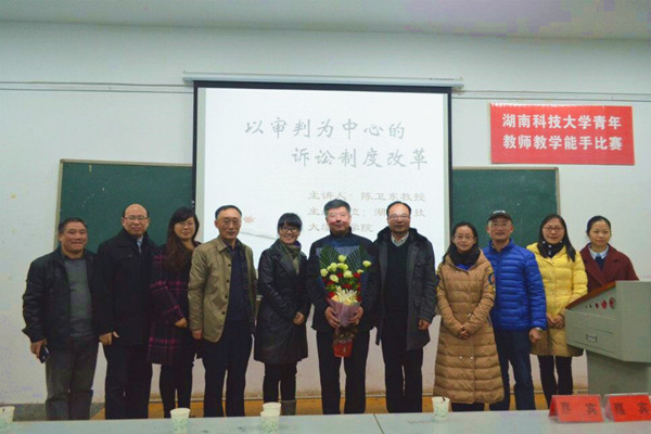 副院长胡正昌教授、马克思主义学院院长徐德刚教授、法学院胡之芳教授、吴四江副教授、李云霖副教授、宋智敏副教授等多位法学系教师以及湘潭大学法学院李蓉教授等一行四人参加了本次论坛。 陈卫东教授首先围绕如何理解“以审判为中心”进行了观点梳理和澄清,指出“以审判为中心”是以诉讼职能的划分和差异为前提,不宜简单理解为“以庭审为中心”,也不能理解为侦查起诉的标准应向审判标准看齐。陈教授指出“以审判为中心的诉讼制度改革”是最具影响力的改革,它意味着以法院为顶点,控辩两翼平衡的等腰三角形诉讼结构的重建。陈教授具体地从审判程序、审前程序、律师的作为空间、证据制度等方面对诉讼制度的改革如何落地进行了阐述,主张切除预断、实现庭审实质化,学习意大利借鉴其卷宗两次移送制度;对审判独立、检察机关的法律监督、审判程序繁简分流、侦检关系等诸多问题结合实践中改革试点的情况进行了全面的介绍和评述。 互动环节,陈卫东教授对同学们提出的案卷移送制度、冤假错案的责任追究制度等问题进行了详尽的回答。最后,徐德刚教授对讲座内容做了全面的小结,同时作为一个宪法学者提出了很多独具视角的问题和建议。整场讲座历时近两个小时,信息丰富、深入浅出、学术气氛浓郁而活泼。14级法学系学生吴琼在采访中表示:“陈教授的报告让我受益匪浅,深觉法治建设任重道远,我愿意努力学习,为将来参与法治建设打下良好的基础。” (责任编辑:admin) |