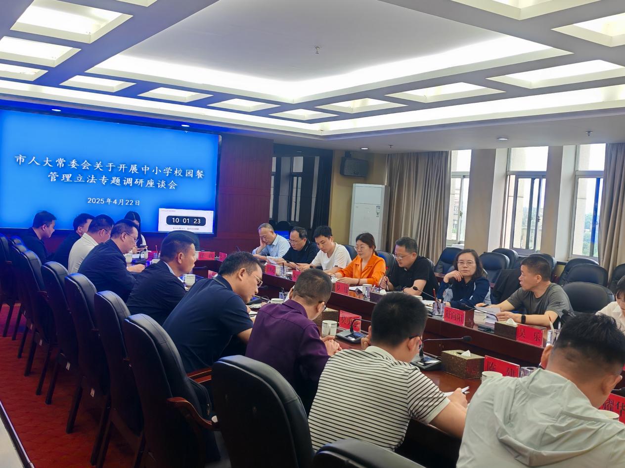 在座谈会上,调研组与当地县(市、区)人大常委会、教育、市场监管、卫健等单位负责人,属地中小学后勤负责人、家长代表、食材供应商代表等人员,围绕食品安全监管、营养保障、经费管理、供应商资质等议题展开了深入探讨。