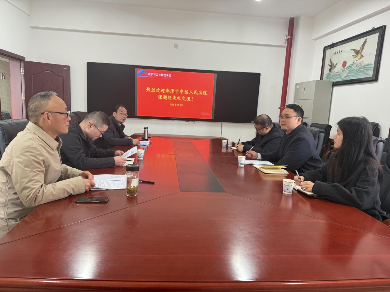 2025年4月1日上午,湘潭市中级人民法院政策研究室主任王新龙一行来学院调研交流。芭乐视频