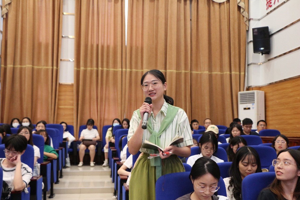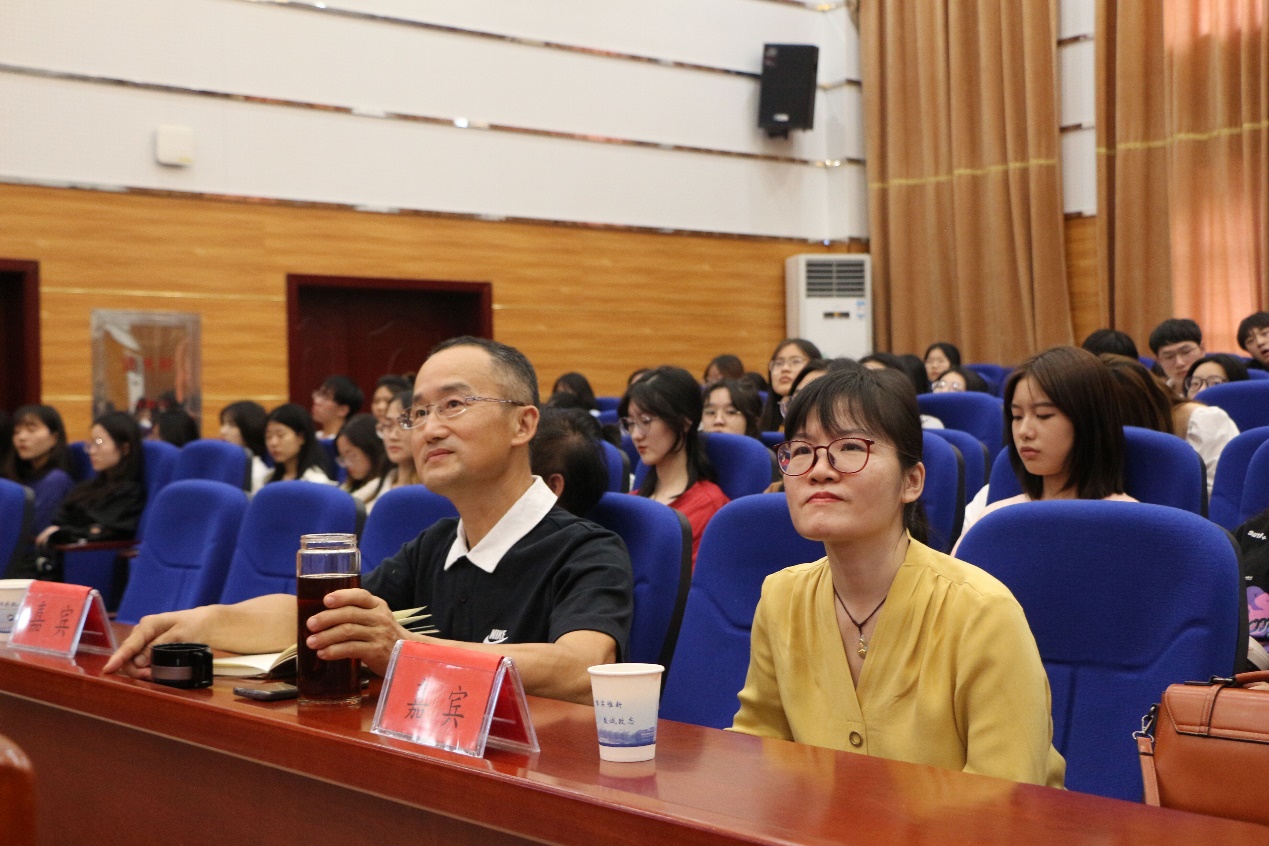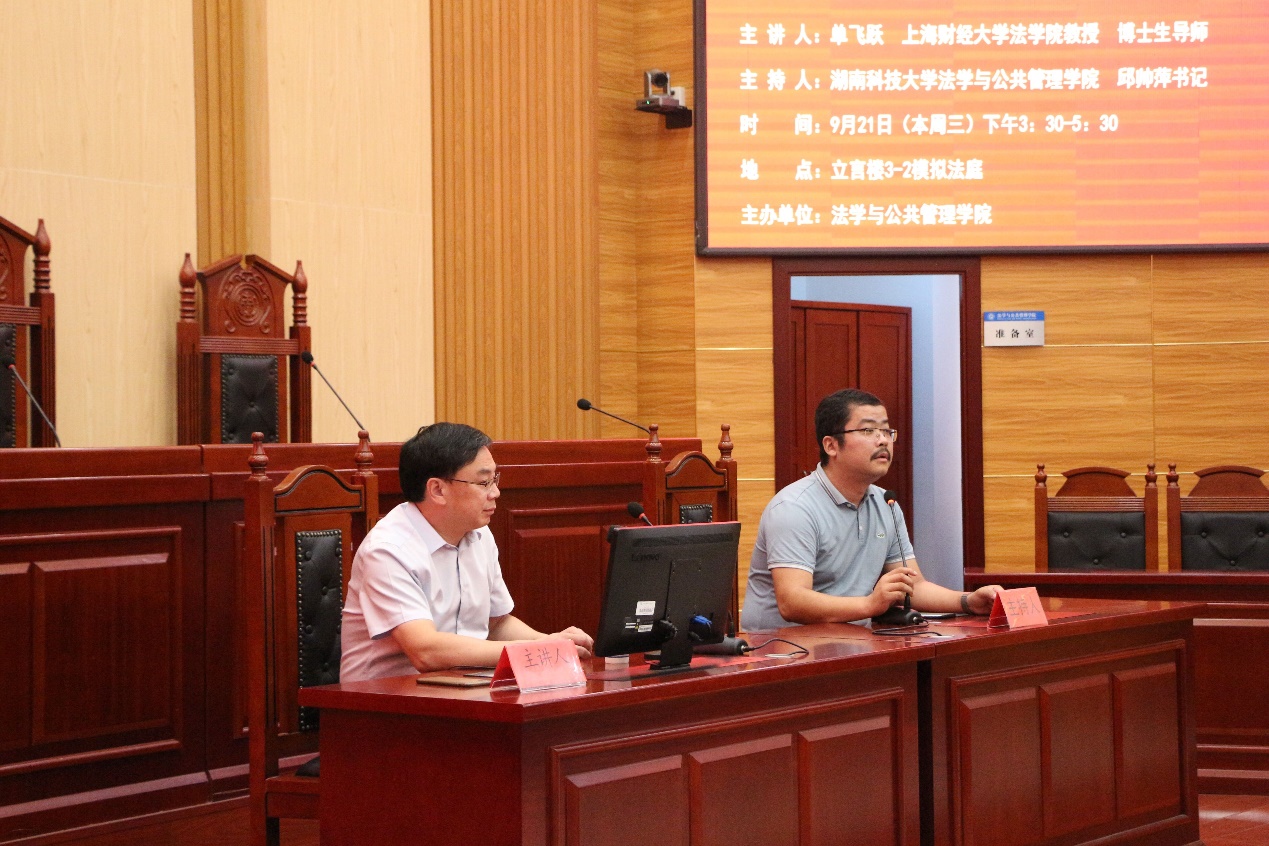 师生代表和湘潭市中级人民法院代表到场聆听,本次讲座由法学与公共管理学院党委书记邱帅萍主持。