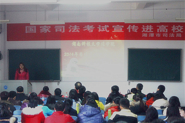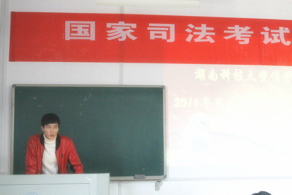 在八教2-1教室召开司法考试经验交流会。较往年不同,此次会议特邀湖南省司法系统的领导出席,他们是:湖南省司法厅司法考试处处长何忠禄、副处长许艳芳、湘潭市司法局分管司法考试的领导刘旭东、司法考试科科长宋东和副科长潘岩。芭乐视频