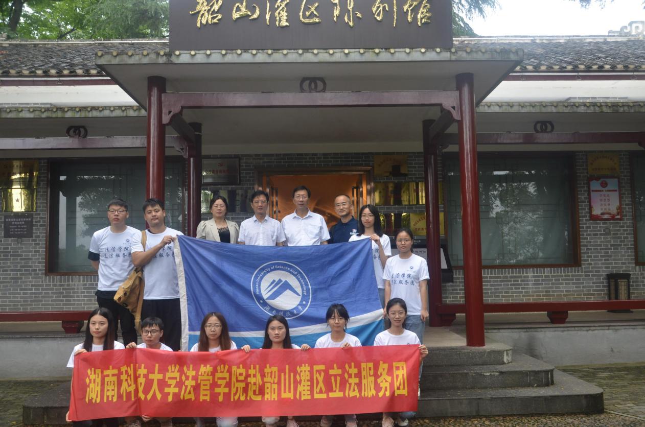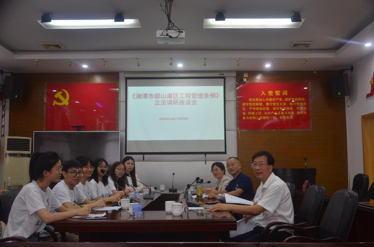 为积极响应研究生“青春在路上”暑期科技服务的号召,学习韶灌精神,助力《韶山灌区工程管护条例》的科学制定,2021年6月30日下午,我校立法服务团赴韶山灌区进行了实地立法调研。立法服务团由姚敏慧为首的法律硕士生10人组成,徐德刚院长、宋智敏教授担任指导老师。为习得立法调研的技术,提高调研的针对性,活动邀请了湘潭市人大法工委副主任刘和莲、湘潭市司法局副局长贺星庚随团指导。