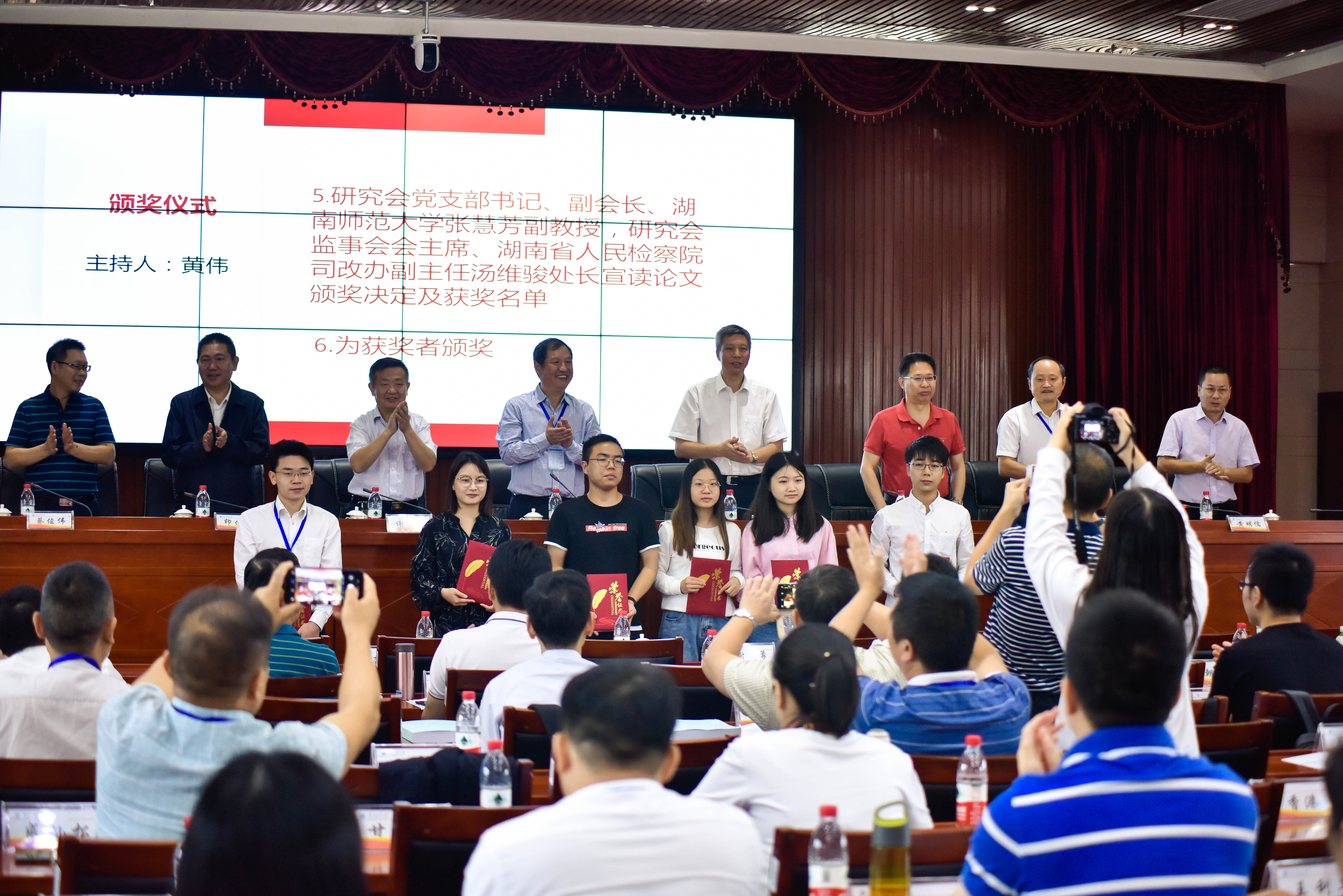 开幕式最后,由研究会监事会主席、湖南省人民检察院司改办副主任汤维骏处长宣读了论文颁奖决定及获奖名单,并由主席台嘉宾现场为一、二等奖获得者颁奖。在此次论文评选中,芭乐视频
