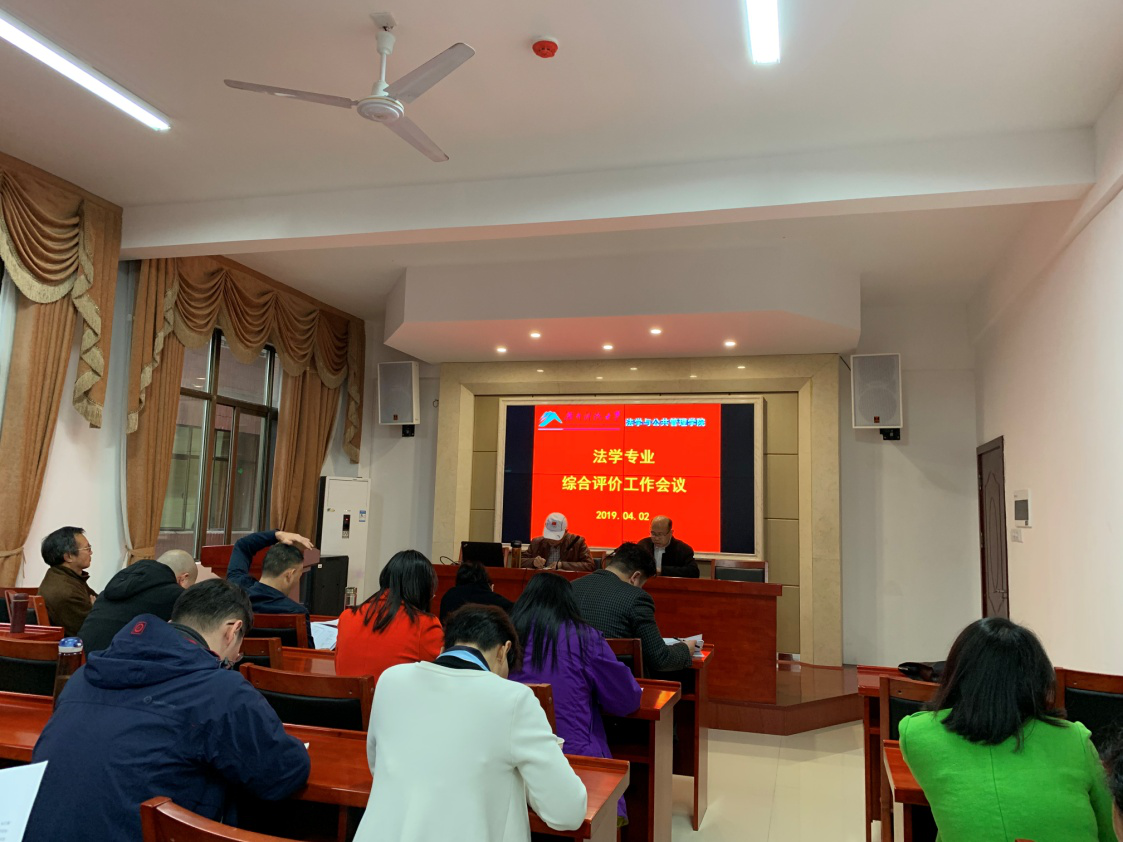 2019年4月2日下午,法学专业综合评价会议在文科楼A-425会议室举行。本次会议成立了法学本科专业综合评价工作领导小组,明确了人员分工,确定了法学本科专业综合评价工作的目标、方案与具体措施。