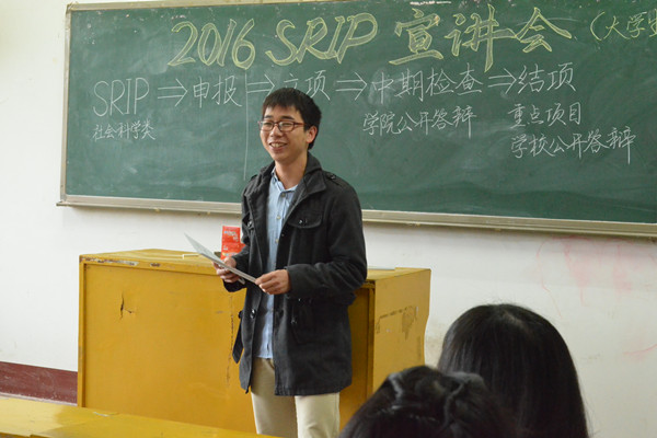科技部于十教308召开宣讲会,2015年SRIP立项同学蔡泽涛到场分享经验,芭乐视频
