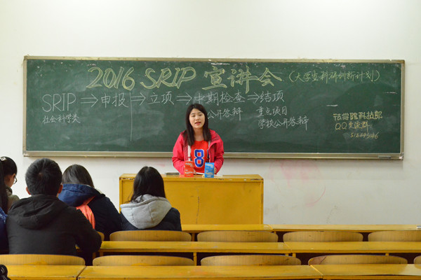 委员会组织进行,分为自然科学类和社会科学类,成功立项的项目可申报校级‘挑战杯’、节能减排、创新创意等科技竞赛。”随后,蔡泽涛分享了自己的心得体会,他表示,通过参与SRIP项目可以学到许多知识,并能提高自己的创新实践能力。 会议最后,15级法学一班班长张晓宇说道:“SRIP立项对我们在校低年级学生而言,是一个提高自我创新实践能力的平台,也是一次学以致用的契机,我一定会积极参与并做好班级的组织宣传工作!” (责任编辑:admin) |