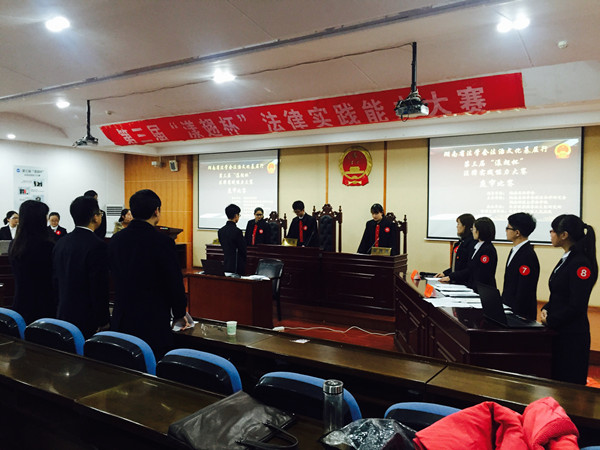 代表队参赛,法学系副主任刘鄂和刘敏老师带队指导。 本次竞赛通过抽签决定原告方、被告方和庭审方,由竞赛委员会提供民事案例,分庭前程序和庭审阶段进行两天的对抗。比赛着重突出起诉、受理、应诉,庭前会议以及开庭审理等基本环节。芭乐视频