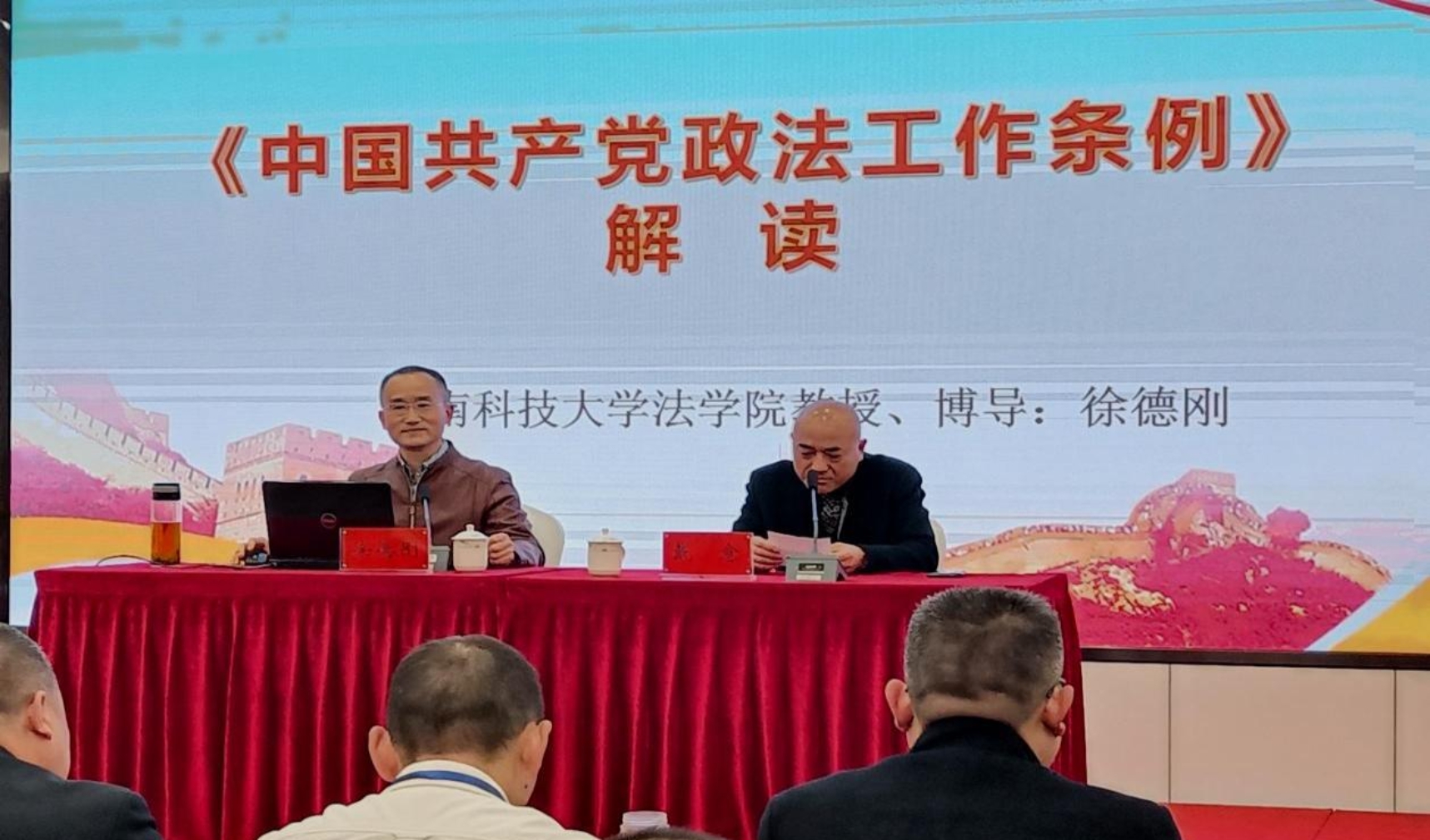 徐德刚教授应邀为湘潭市下属县市区政法委领导和各乡镇(街道)党委副书记、政法委员共60余名学员授课,主讲了《<中国共产党政法工作条例>解读》一课,湘潭市委政法委专职委员戴愈主持讲座。