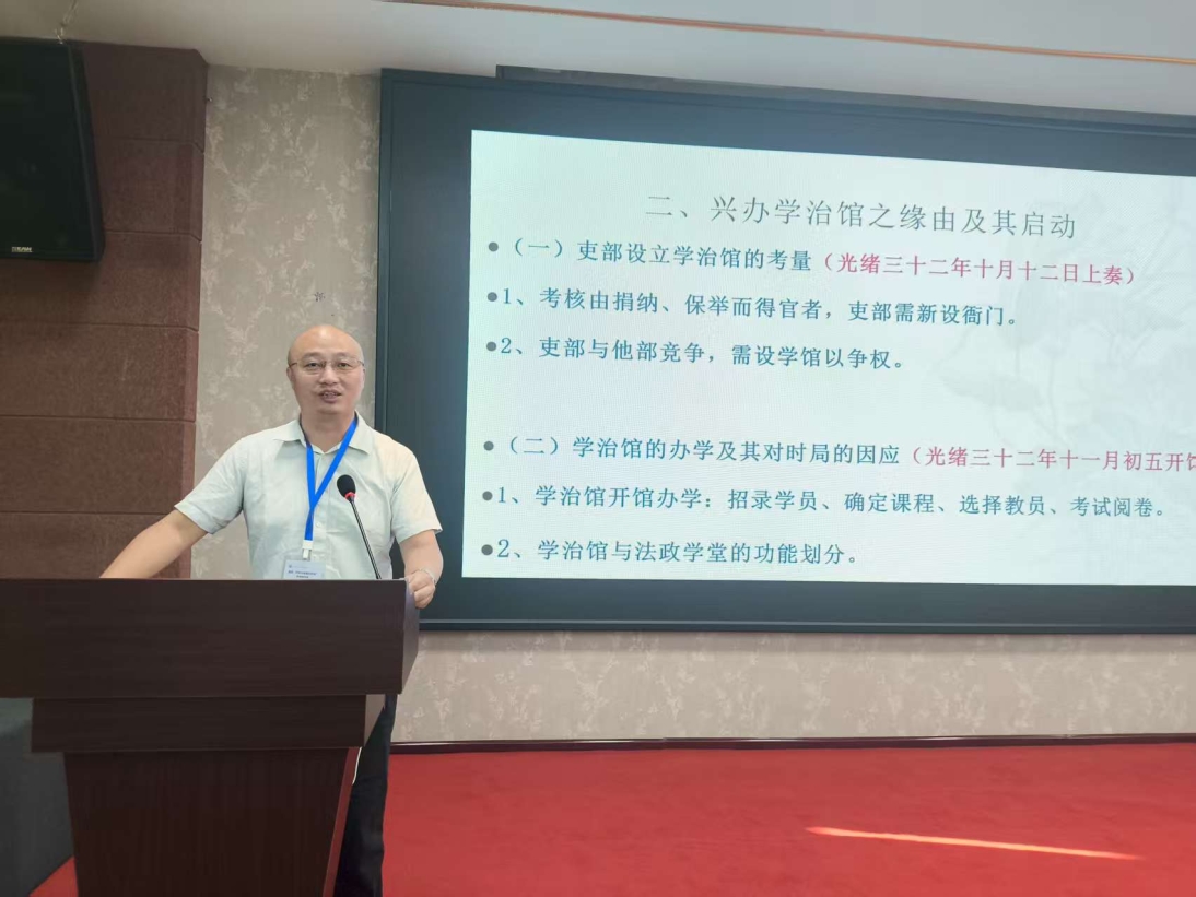 刘鄂老师受邀就清末学治馆设立之原因、办学过程等问题进行论文报告,评议人员对于刘鄂老师发言所依托论文在论据的丰富度、论证的逻辑性等方面给予了充分的肯定。