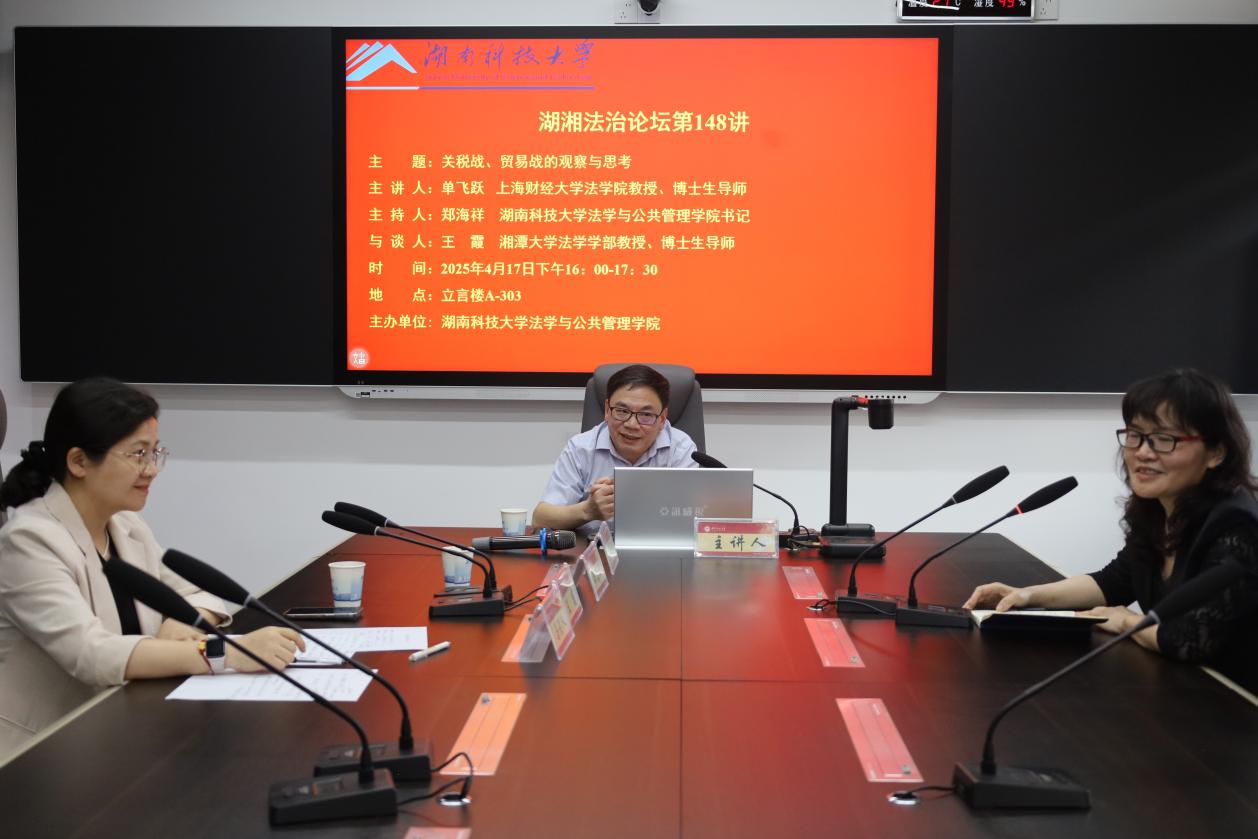 4月17日,上海财经大学单飞跃教授应邀于我校作“关税战、贸易战的观察与思考”主题讲座。本次讲座在立言楼A303研讨室举行,由芭乐视频