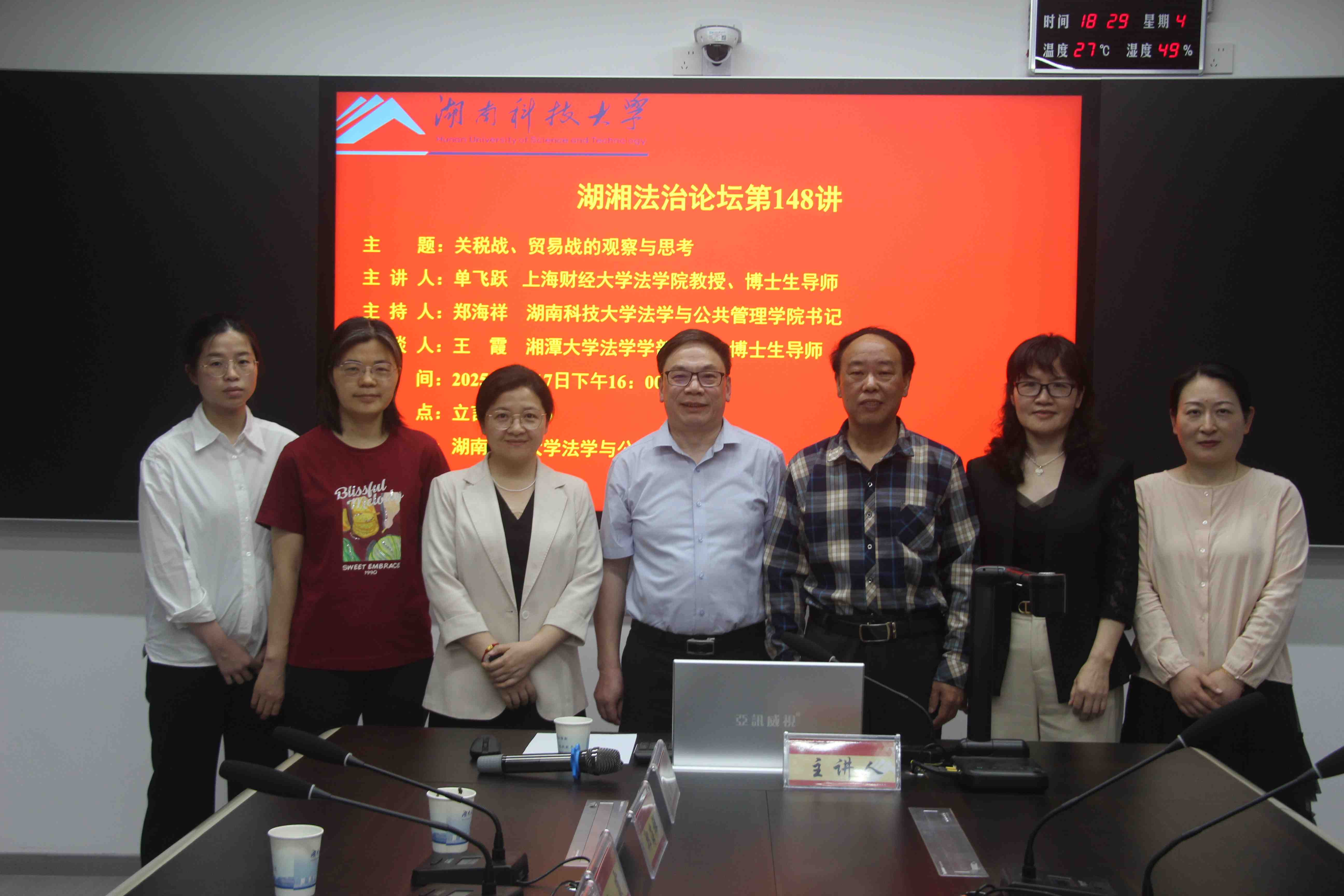 讲座最后,胡教授对本次论坛进行了全面总结。她高度评价了单教授的学术分享和王教授的精彩与谈,认为本次论坛不仅拓展了师生的学术视野,更为理解当前国际贸易争端提供了新的思考维度。在热烈的掌声中,本次湖湘法治论坛圆满落下帷幕。