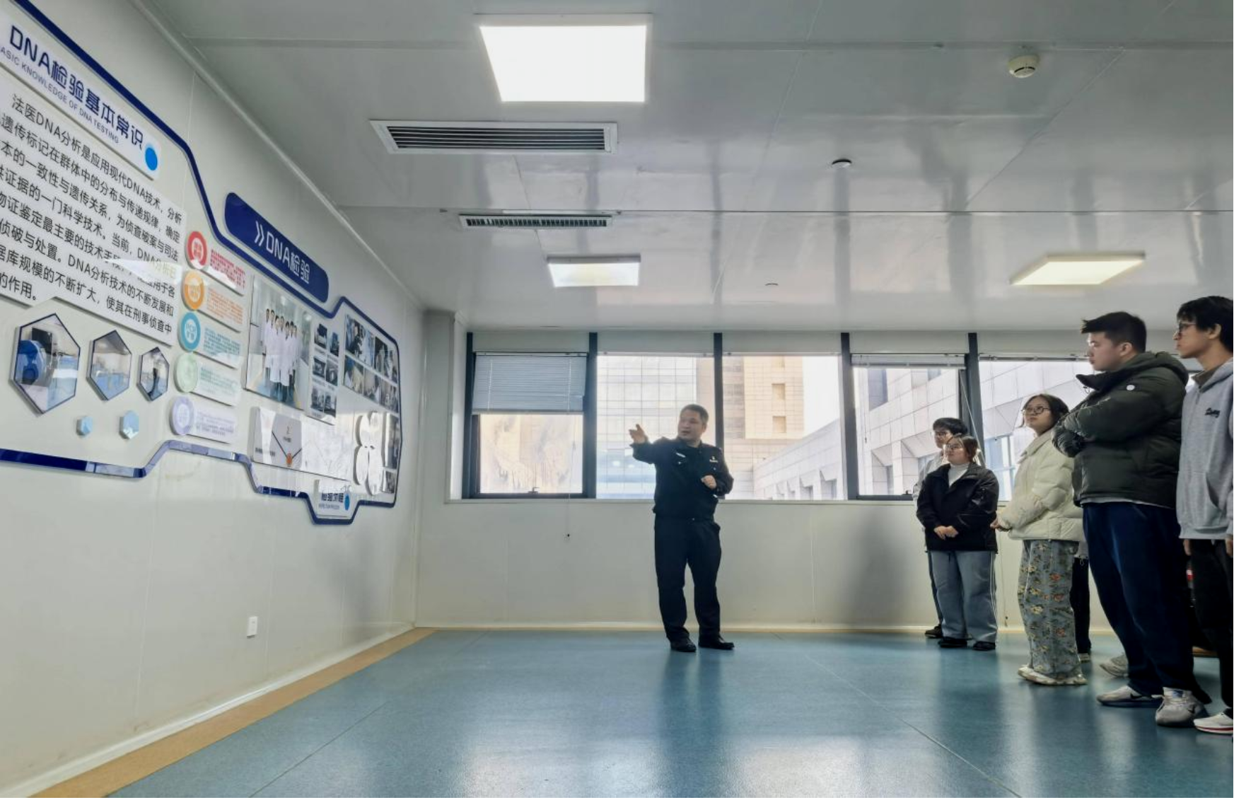 在刑侦所专业技术人员的引导和讲解下,同学们参观了理化实验室、DNA科、痕迹科、声影科、文书鉴定室等多个先进实验室。精密的检测仪器、规范的操作流程、严谨的工作态度,让同学们深刻感受到了科技赋能下刑侦工作的精准与高效。此外,同学们还前往指挥中心和反诈中心,进一步了解警务工作者的日常工作。工作人员的详细讲解,使同学们更加认识到当前反诈工作的重要性和反诈行动的高效性。