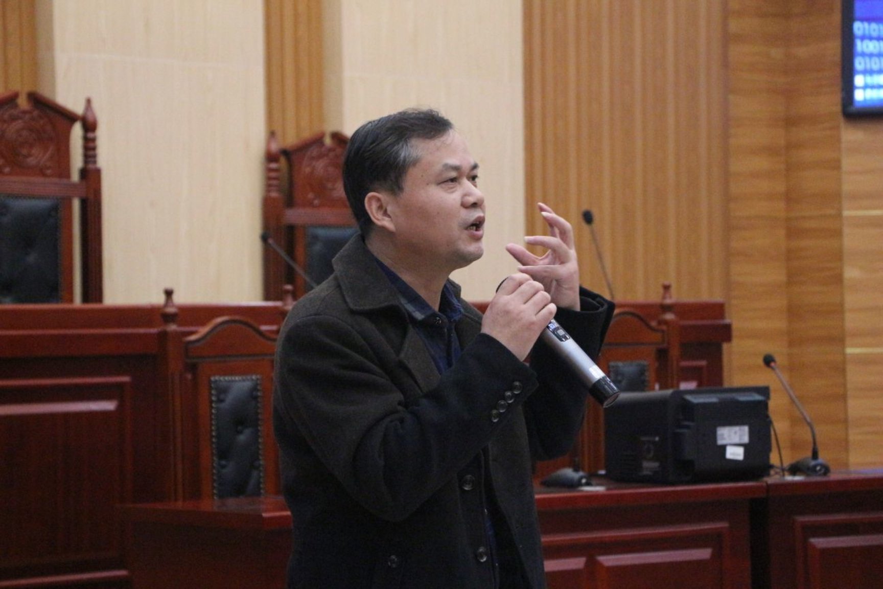 随后,徐德刚教授对本次辩论赛作指导点评。首先,作为法学教授的他,说明了本日的特殊性,即“第22个法治宣传日”“第9个宪法宣传日”,并结合今日辩题中的言论自由从法律层面进行了解读。接着,他饶有风趣地谈论起自身在大学时进行相关活动的缺憾,并对新生此次辩论赛的表现进行了十足的肯定。最后,他站在全局角度指出本次选手们的不足,并借此升华,对新生们发出要“多读书”倡议。语言深沉但又不失张力,对新生未来发展的期盼之情已然溢于言表。